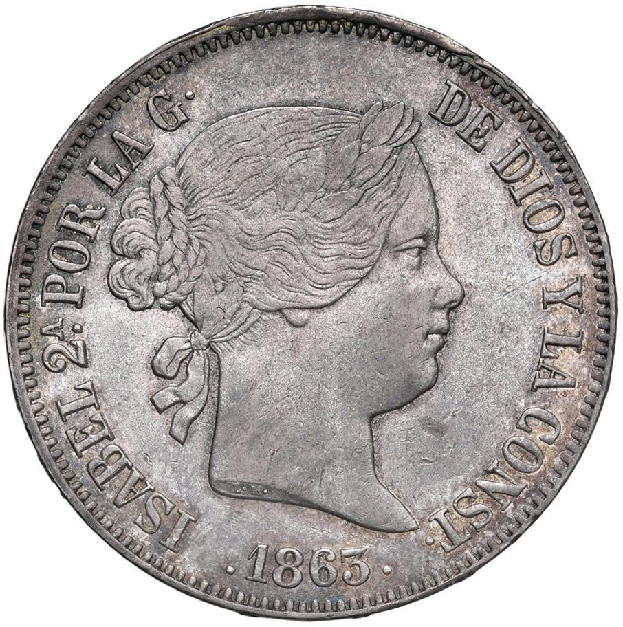Foreign coins - Isabella II (1833-1868) Sevilla - 20 Reales 1863/53 - K...