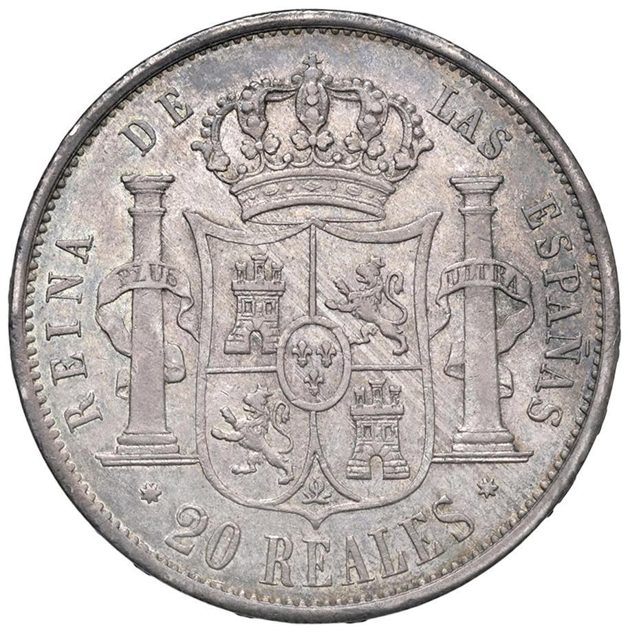Isabella II (1833-1868) Sevilla - 20 Reales 1863/53 - KM 609.3; Cal. 642 AG (g 26,00) Splendida patina riposata