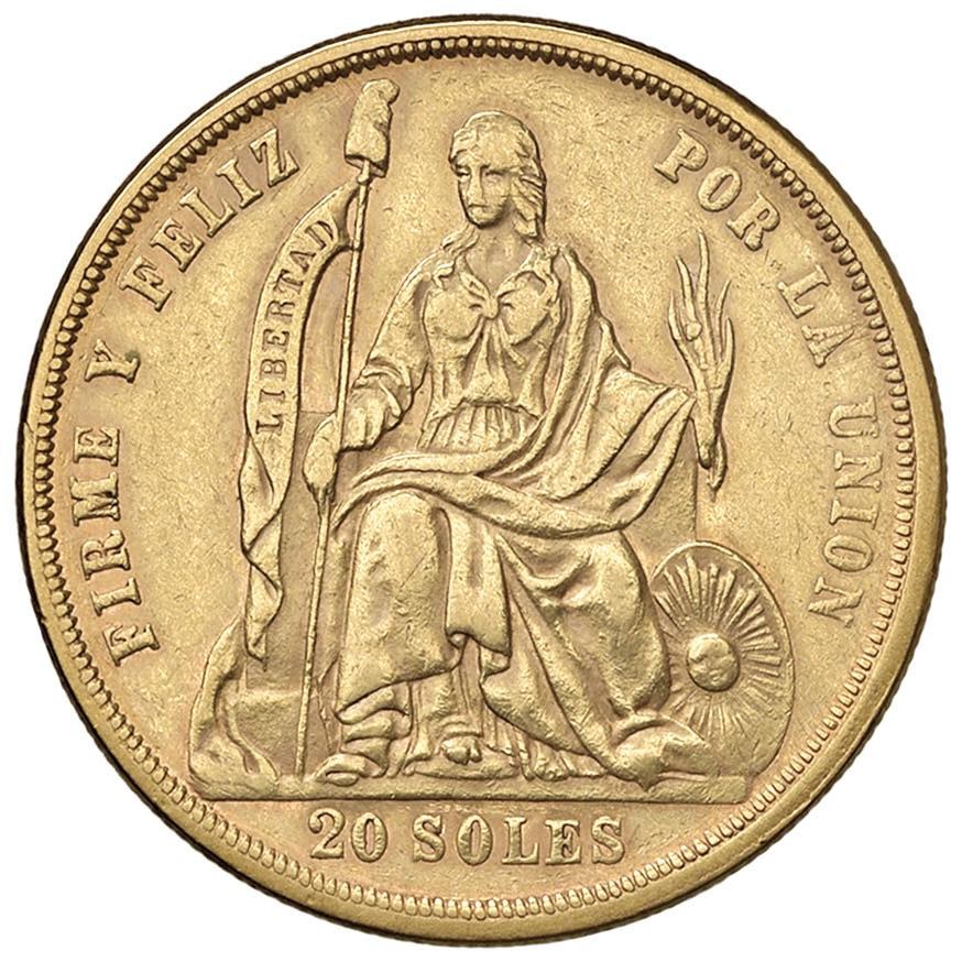 Foreign coins - PERU 20 Soles 1863 - KM 194; Fr. 70 AU (g 32,26)...