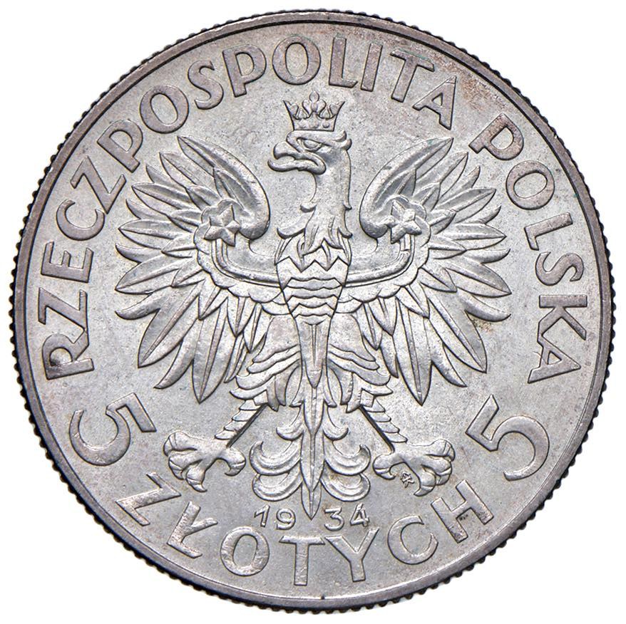 POLONIA Seconda repubblica (1918-1939) 5 Zlotych 1934 w - Y21 AG (g 10,91) In slab CCG MS 63 n° AB522305.