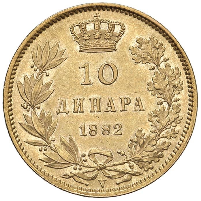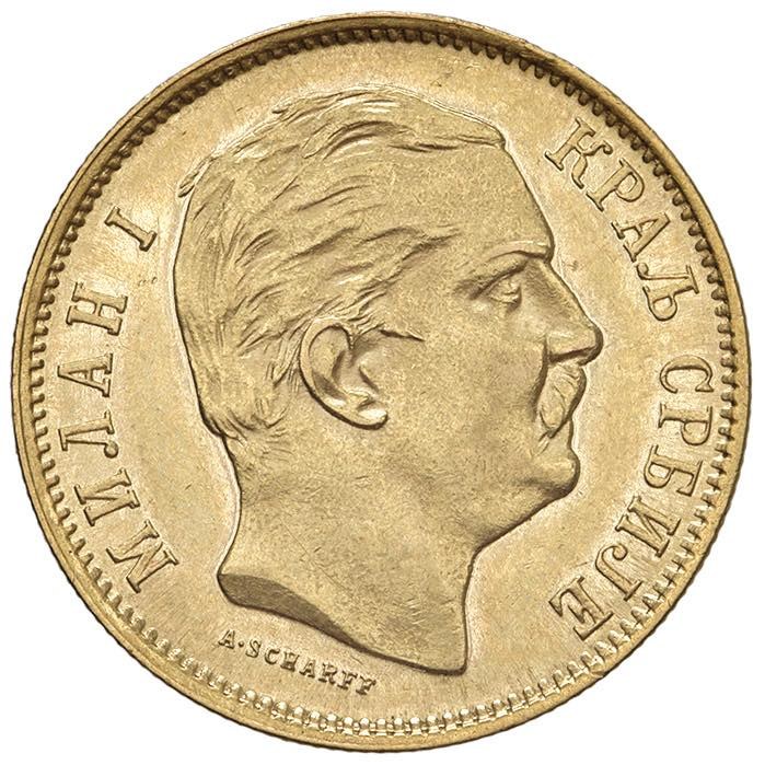 Foreign coins - SERBIA Milan IV (1868-1889) 10 Dinari 1882 - Fr. 5 AU (...