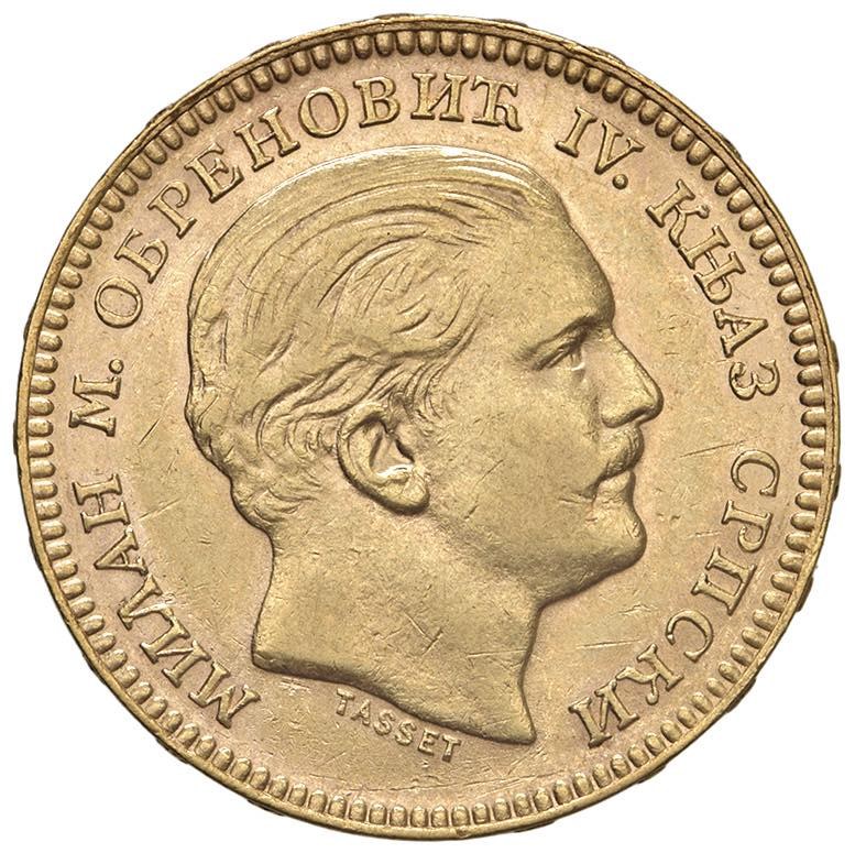 Foreign coins - SERBIA Milan IV (1868-1889) 20 Dinari 1879 - Fr. 3 AU (...