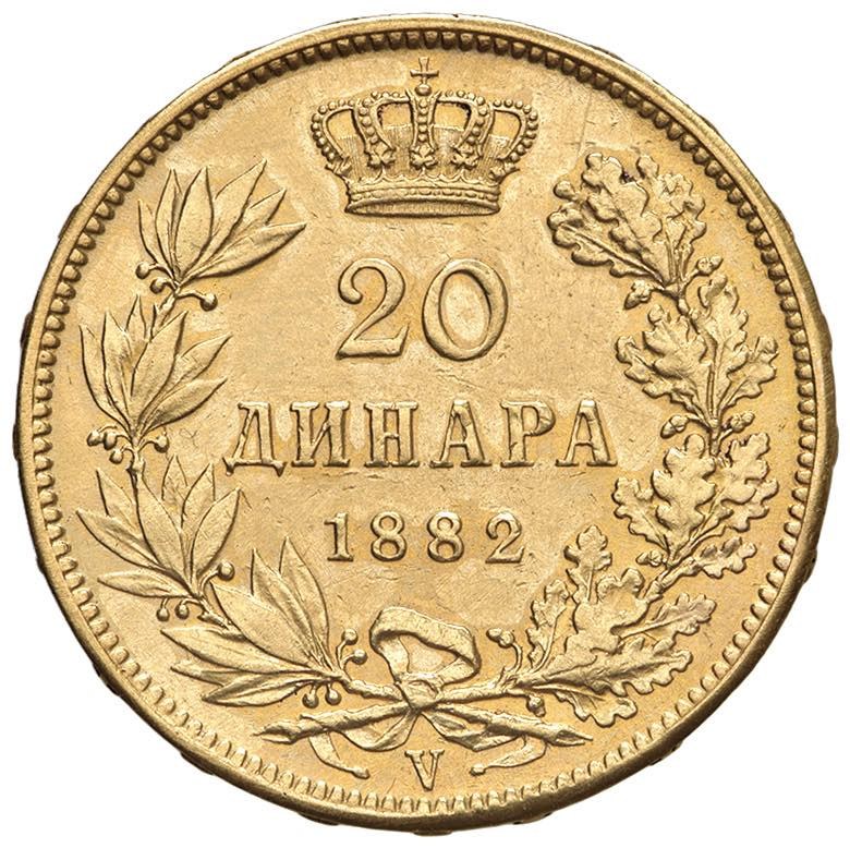 Foreign coins - SERBIA Milan IV (1868-1889) 20 Dinari 1882 - Fr. 4 AU (...