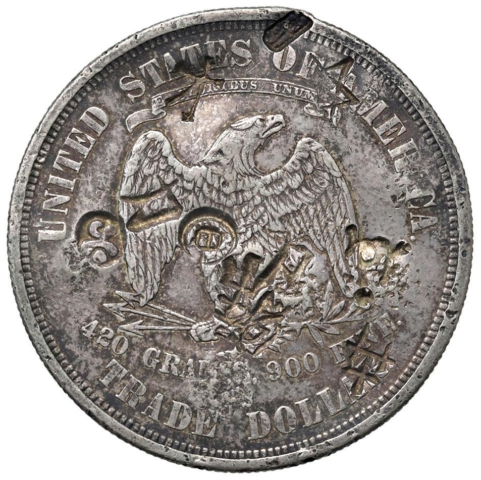 Foreign coins - USA Trade Dollar 1876 - KM 108 AG (g 27,26) Chopmarks...