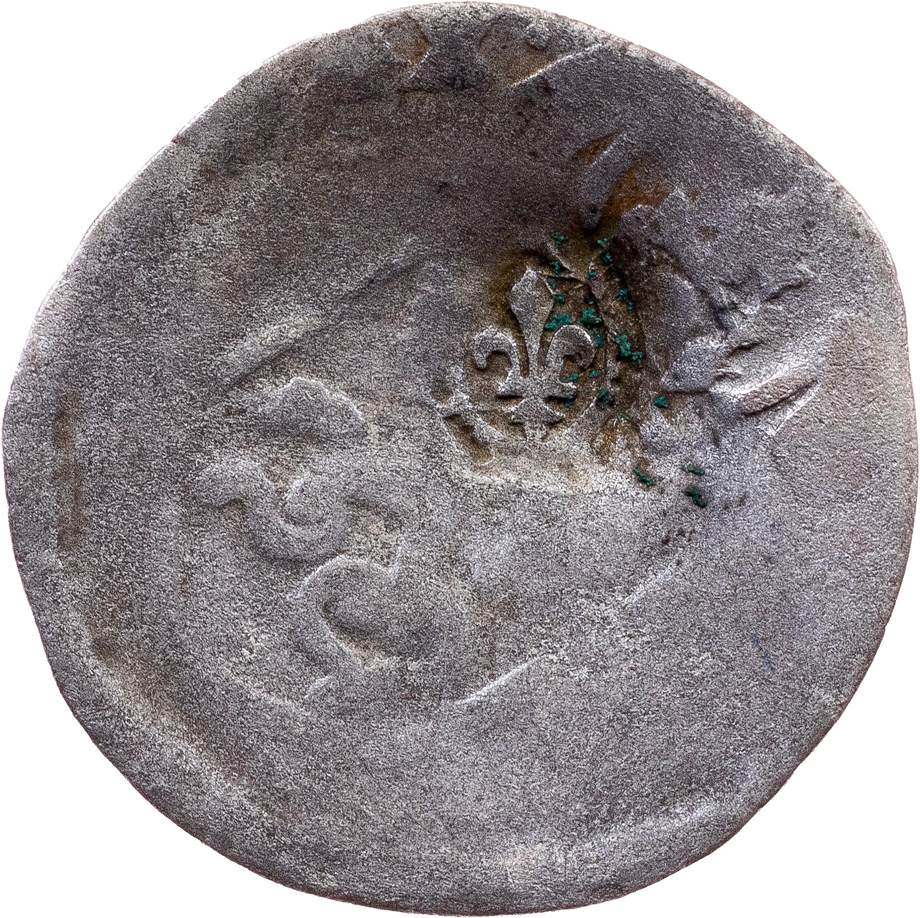 Description: Lily countermark on a Comtat Venaissin Douzain of Clement VIII (Cardinal Ottavio Acquaviva); (MIR 1483-1507). It was countermarked with in accordance with the ordinance of June 1640, giving it a value of 15 deniers instead of 12. A crisp, clear countermark on the obverse of this very rare host type.