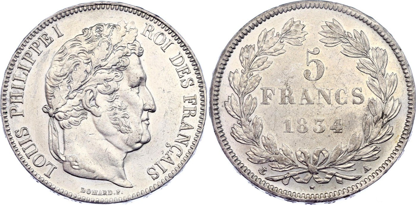 KM# 749; Silver; Louis-Philippe I; AUNC with minor hairlines