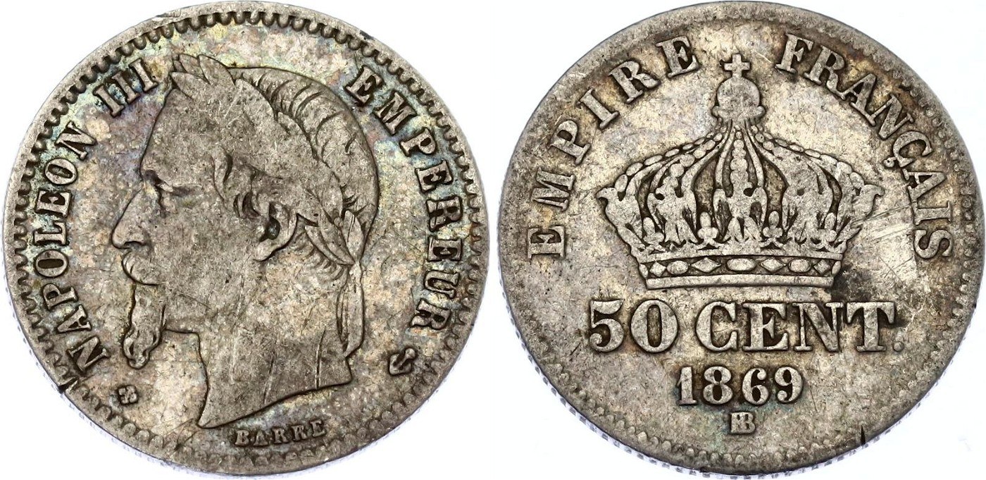 KM# 814.2; N# 1167; Silver; Napoleon III; Mint: Strasbourg; VF Toned