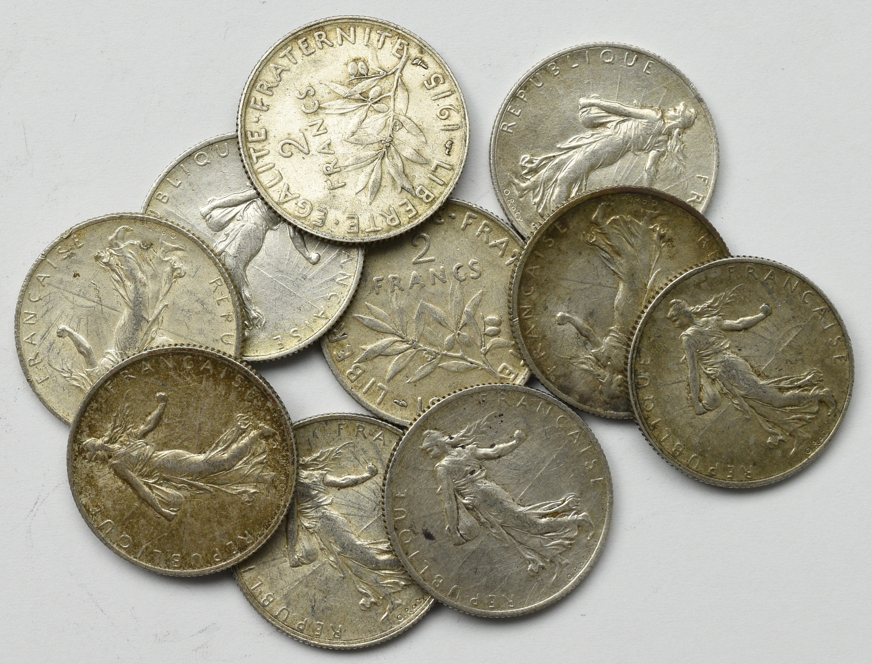 France, Lot of 2 francs 1915-19 (10 ex)