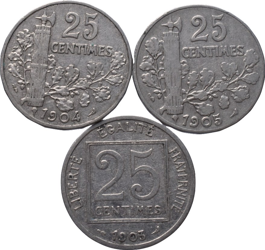 25 centimes 1903, 1904, 1905, 3 ks