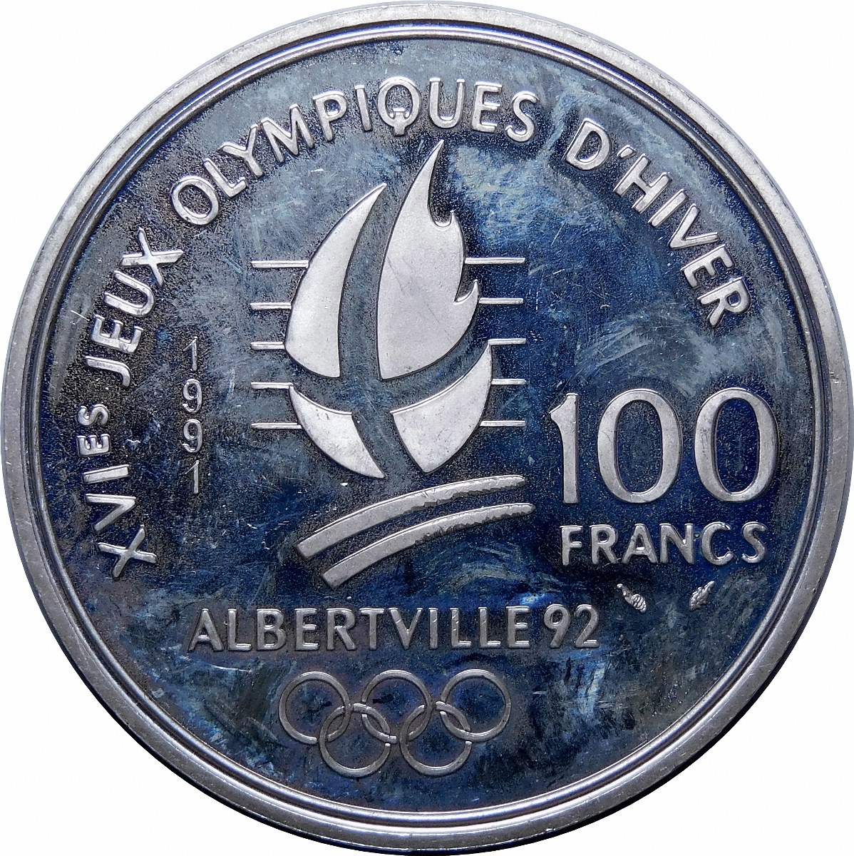 Francja, 100 franków 1992, Paryż, Albertville 1992 - Hokej