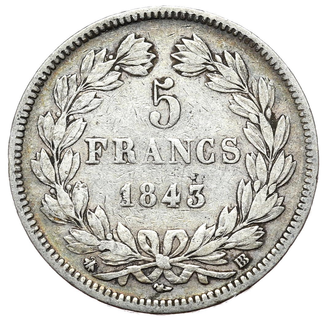 Francja, 5 Franków, 1843r., BB, Strasburg