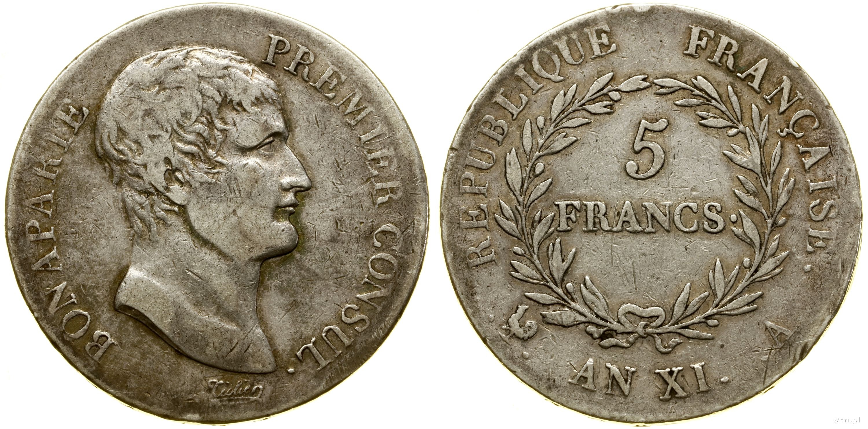 Francja, 5 franków, AN XI (1802-1803) A, Paryż