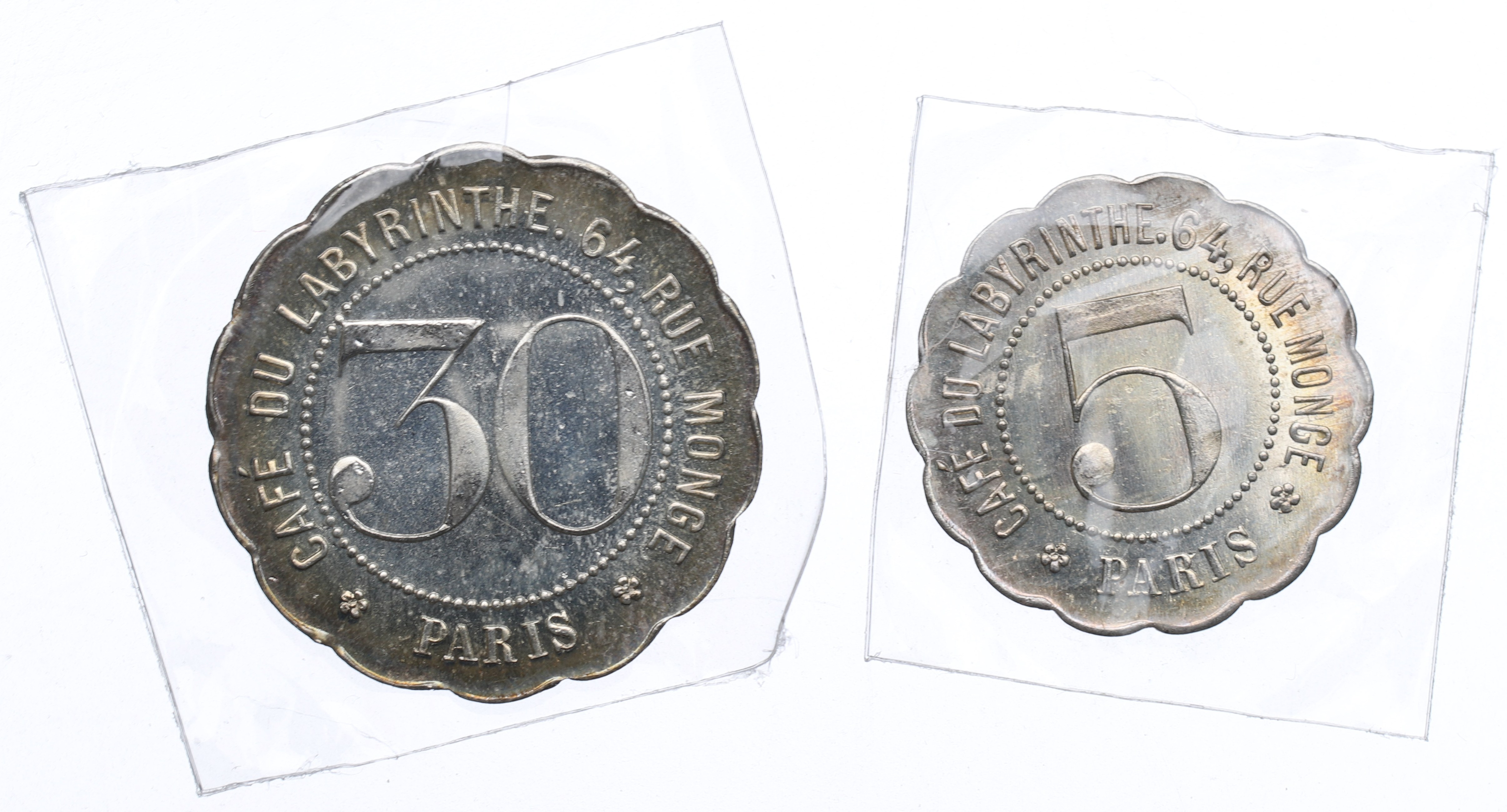 Francja, Zestaw 2 żetonów kawiarnianych Paryż