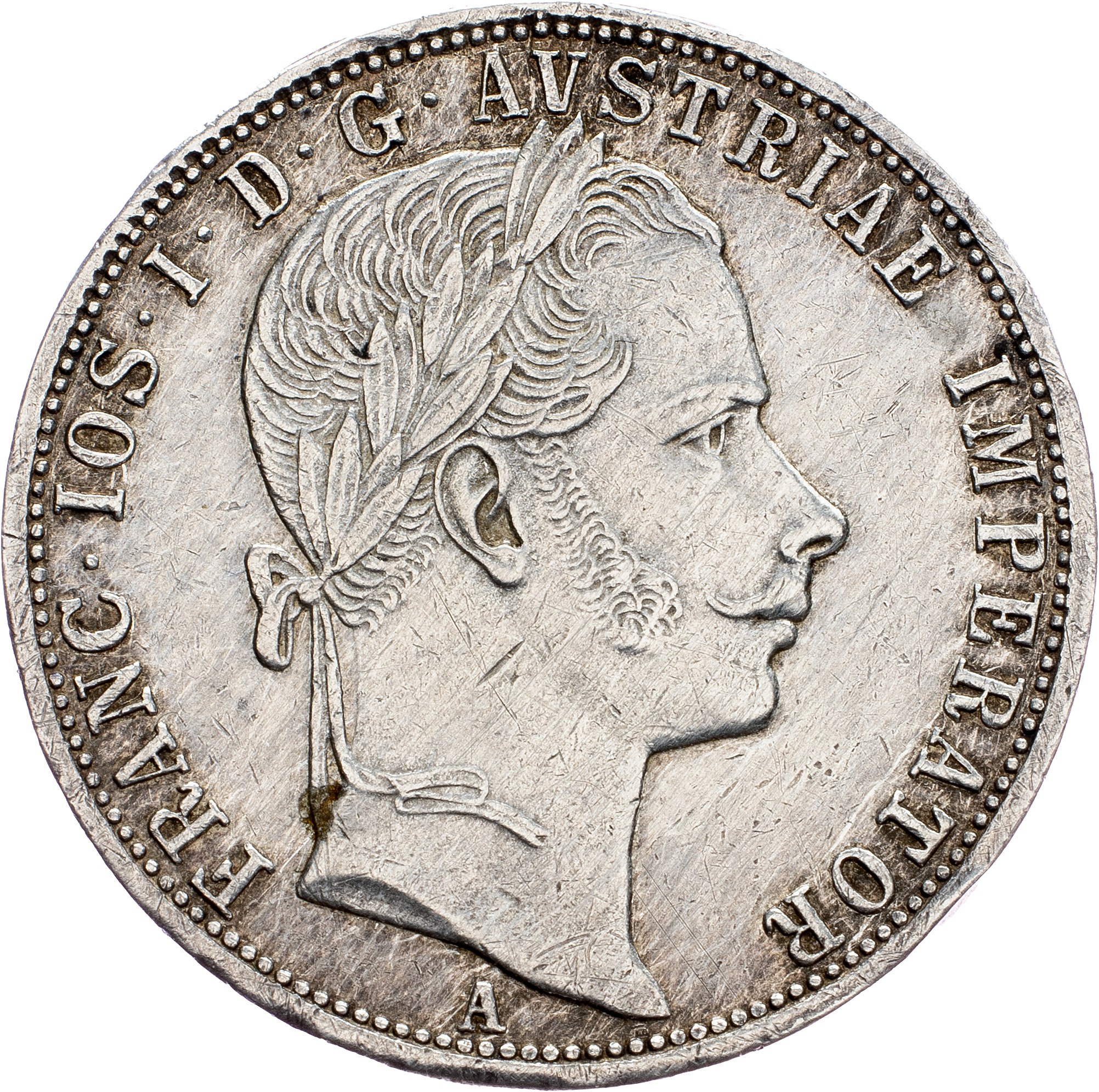 Franz Joseph I., 1 Florin 1860, Vienna, 12,34 g, Ag (900/1000), KM# 2219|cleaned-hairlines; EF