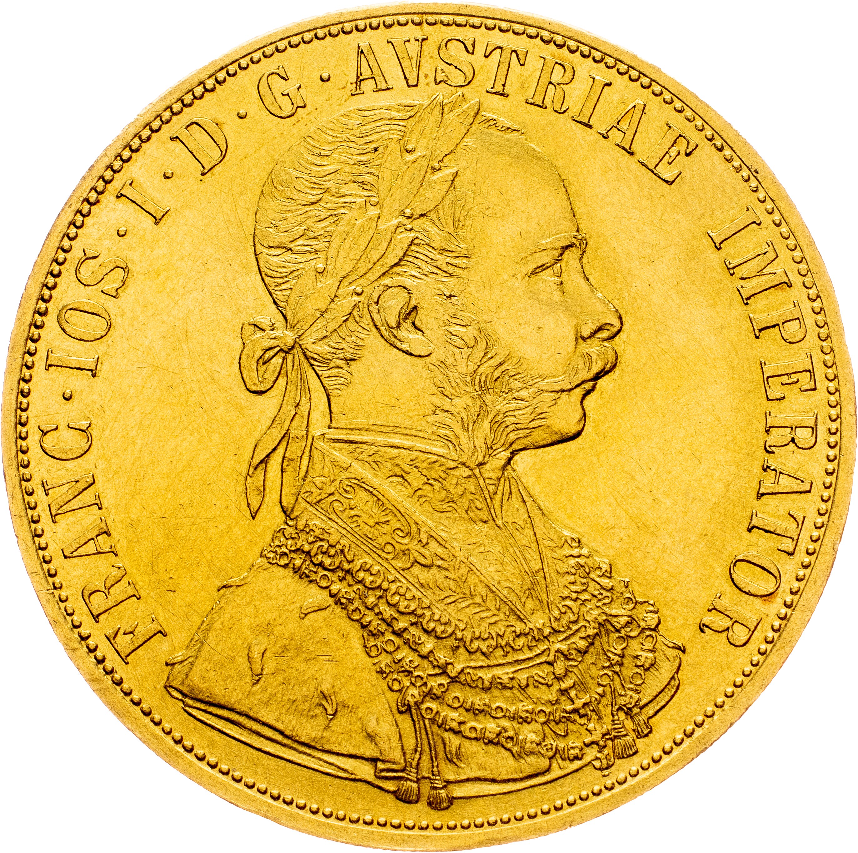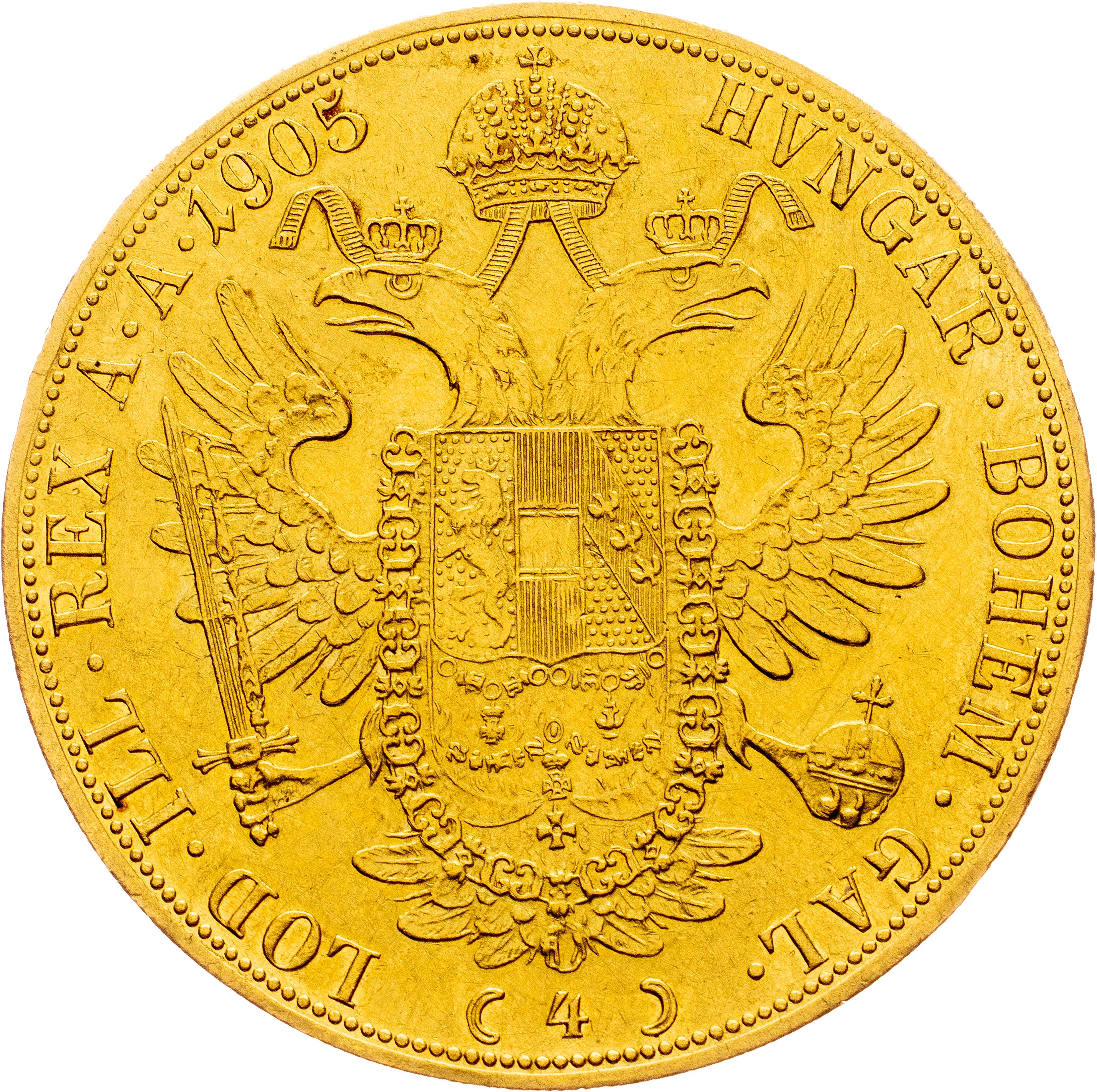Habsburg, Franz Joseph I., 4 Dukat 1905, Vienna, 13,865 g, Au (986/1000), removed from the jewellery, polished; VF+