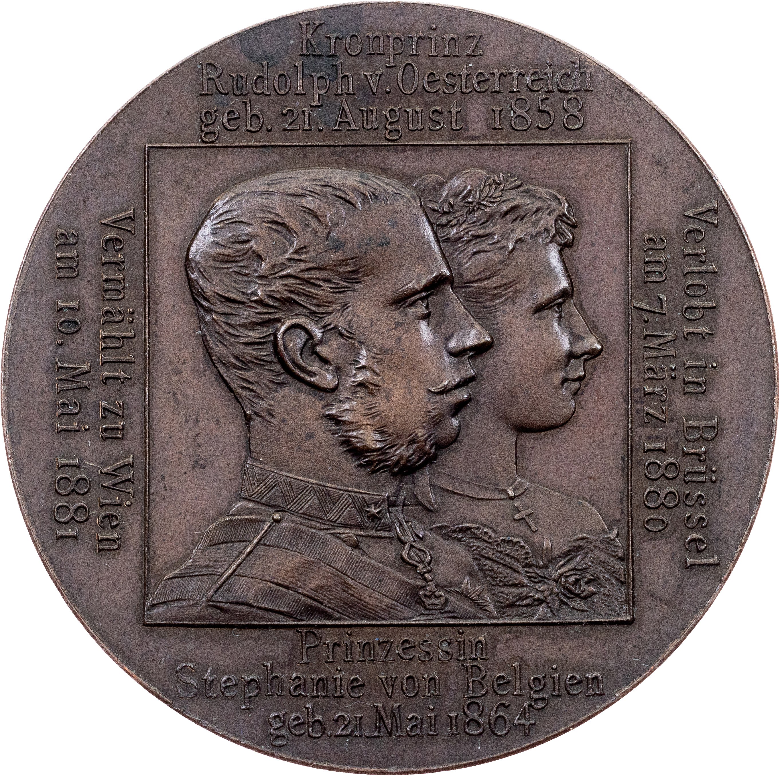 Franz Joseph I, Medal 1881, 17,971 g, AE, Hauser 381, Marriage of the Crown Prince Rudolph to Princess Stephanie of Belgium, toned; EF+