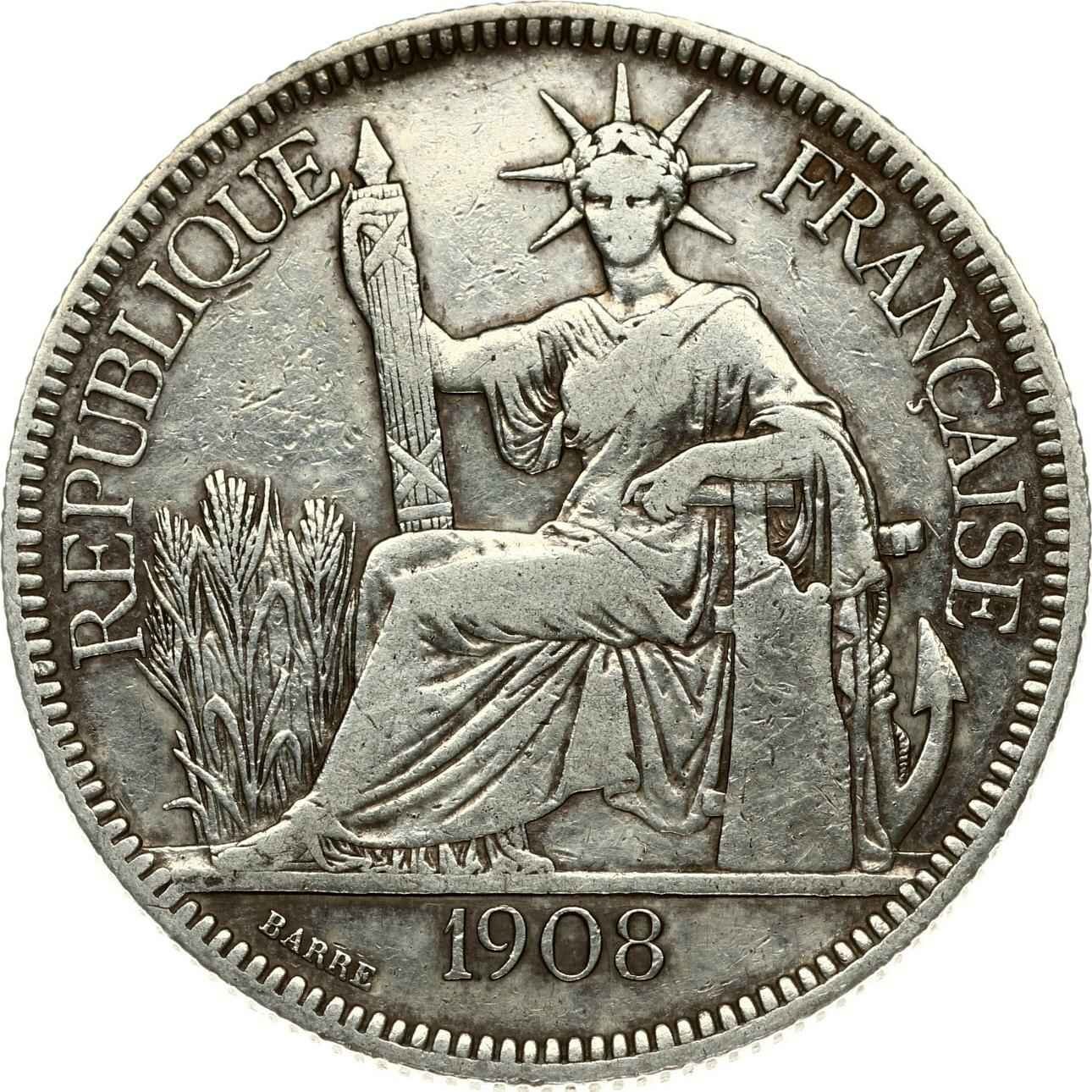 French Indo-China. Trade Piastre 1908 A. Siver 26.81 g. KM 5a.1