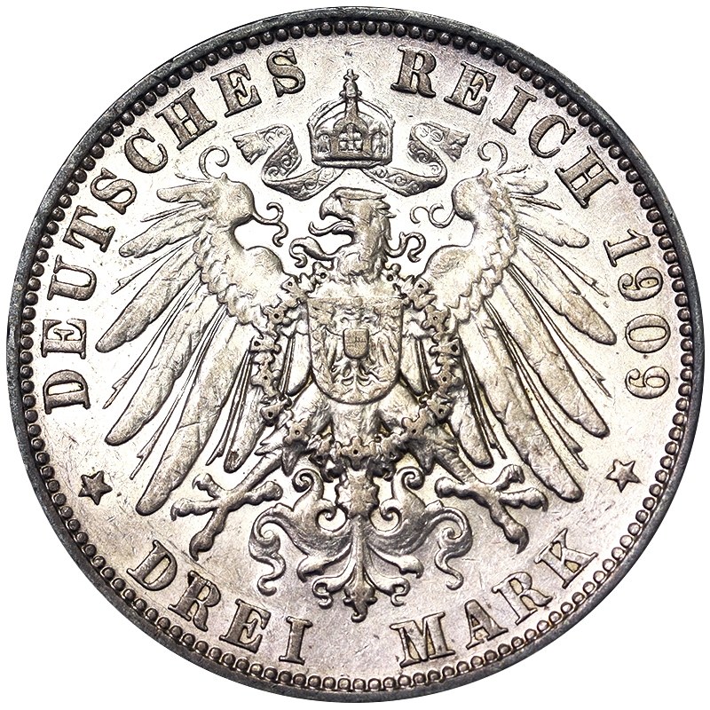 Friedrich August III (1904-1918), 3 Mark 1909, E Muldenhütten