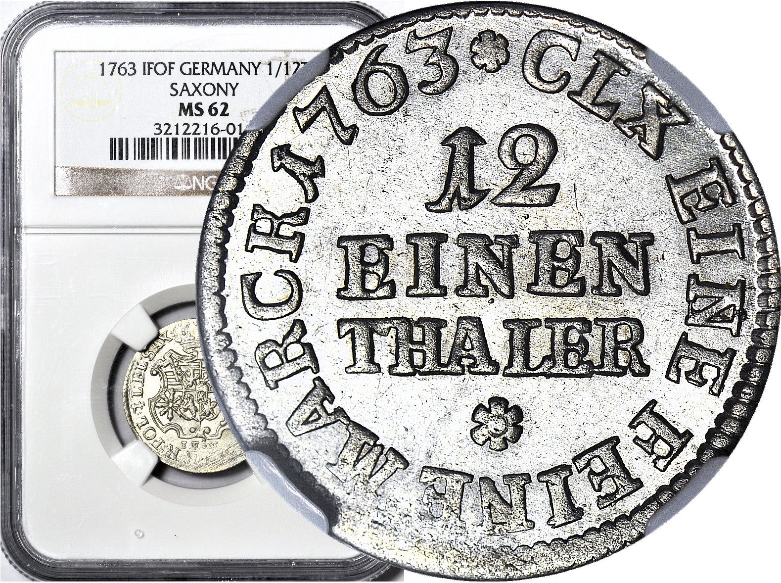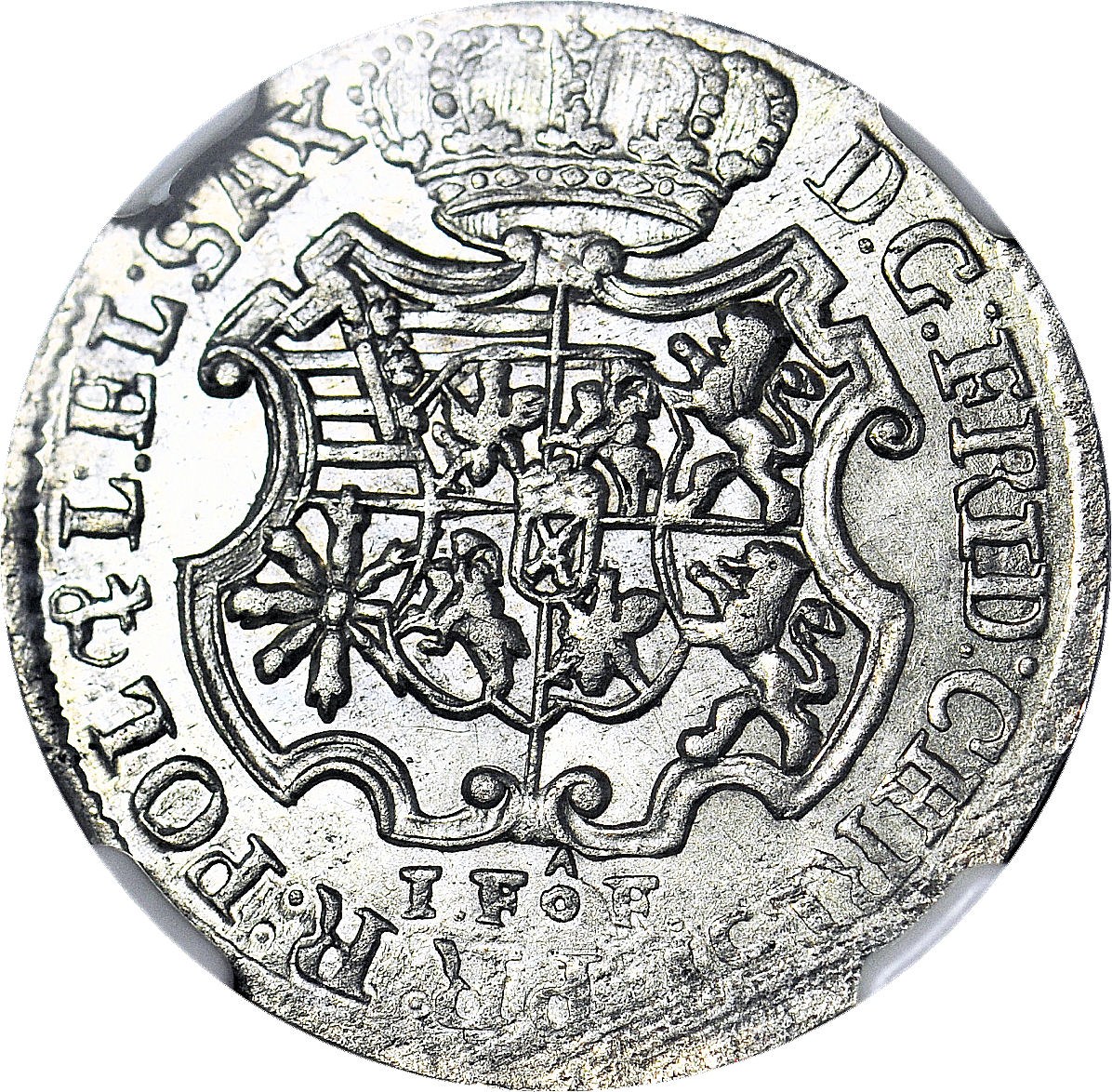 Rzadko spotykany w handlu drobny nominał Fryderyka Chrystiana - książę Saksonii 1763, królewicza polski (syna Augusta III Sasa). Druga najwyższa nota w NGC, tylko jeden egzemplarz oceniono wyżej. Moneta do najlepszych kolekcji.