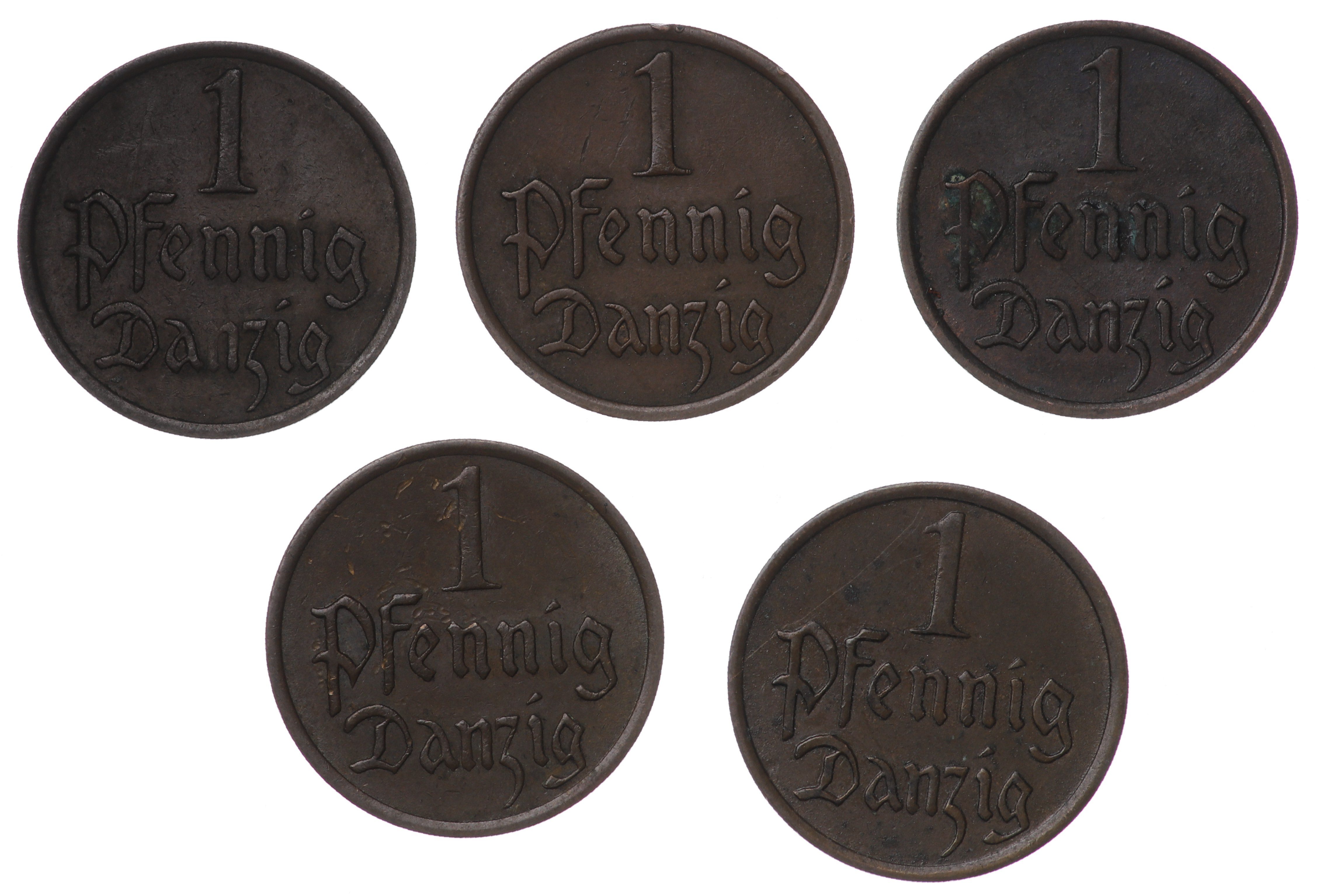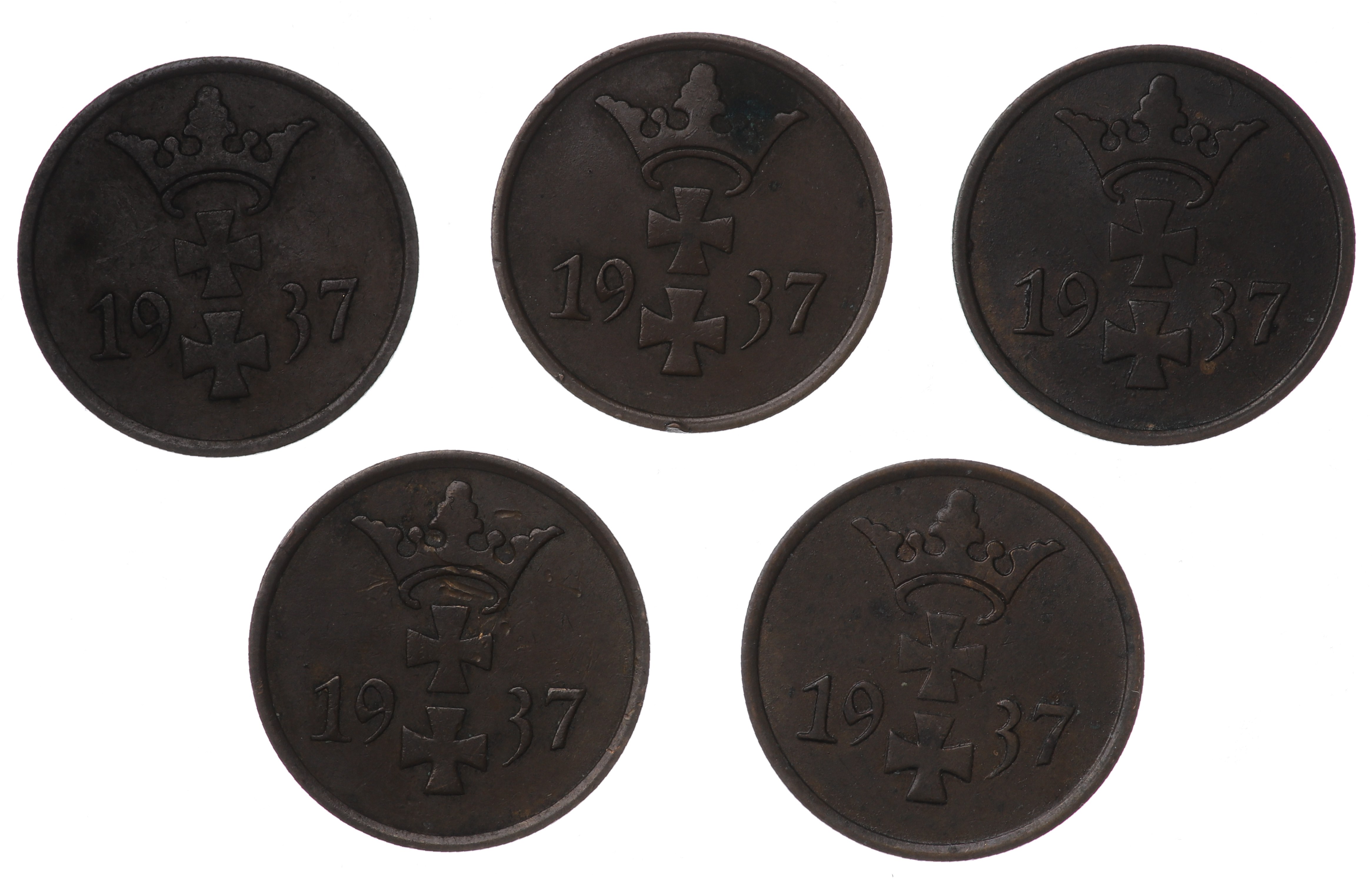 Gdańsk, 1 fenig 1937 - zestaw 5 sztuk