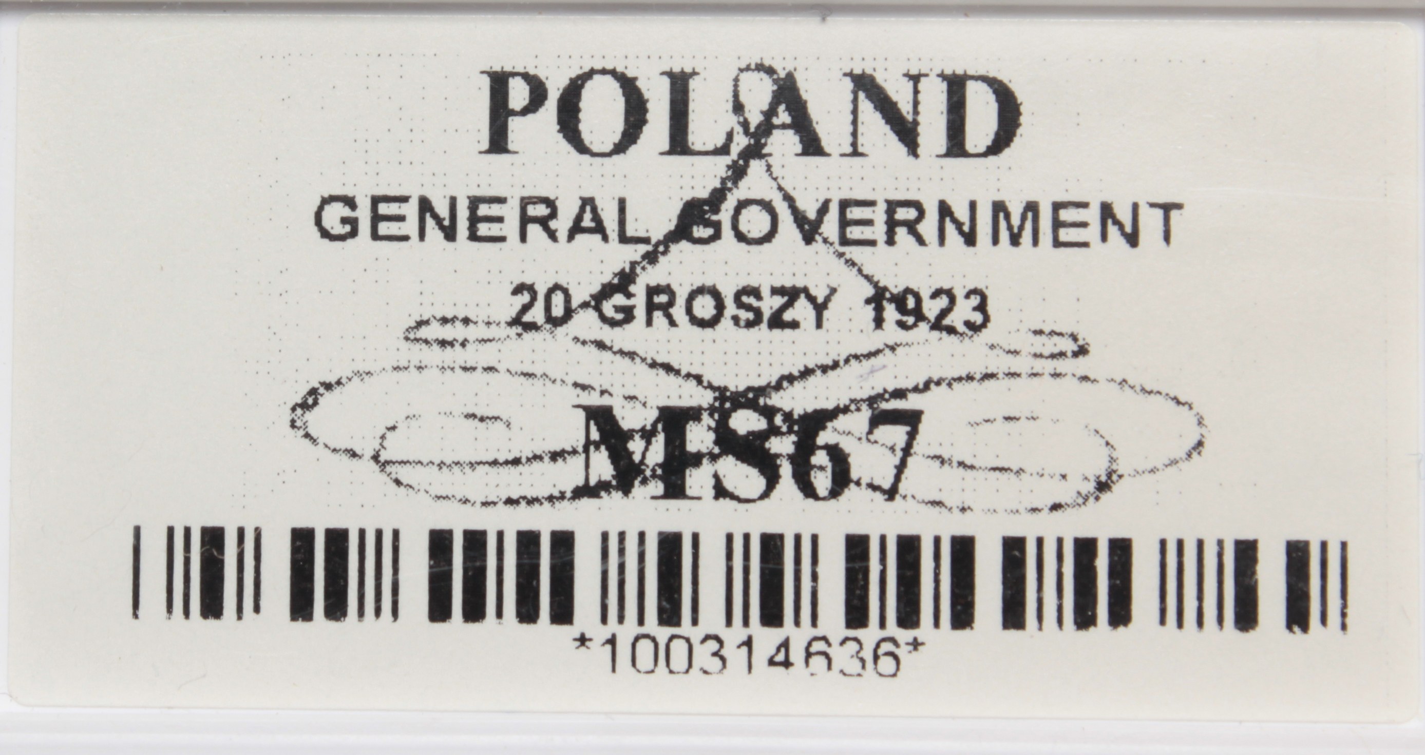 Generalna Gubernia, 20 groszy 1923 GCN MS67