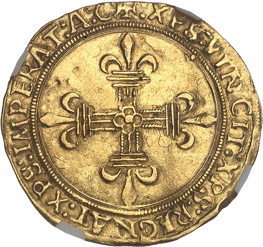 Rv. + XPS: VINCIT: XPS: REGNAT: XPS: IMPERAT: (différent):. croix fleurdelisée.