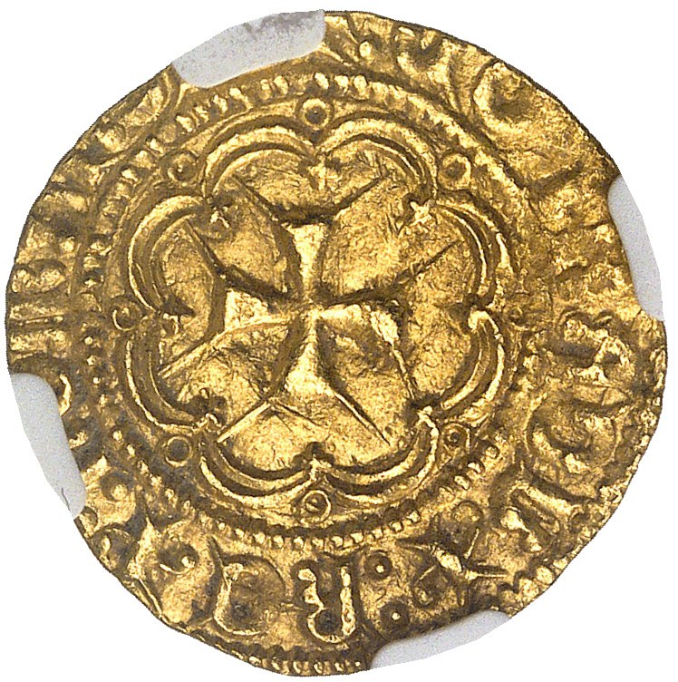 Av. +° R: A: DVX: IANVEN: XXII. Portail génois dans un double octolobe tréflé cantonné d’annelets.