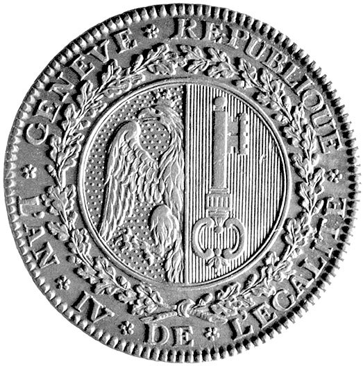 Genewa- półtalar 1795, Aw: W wieńcu herb miasta, Rw: Sł...