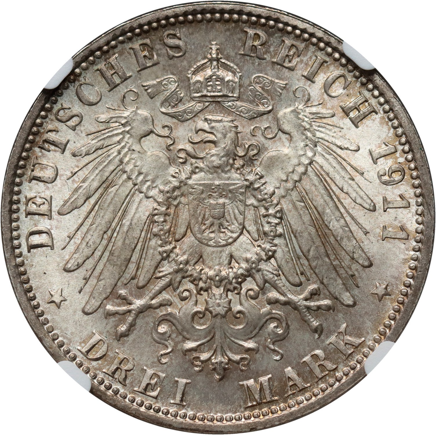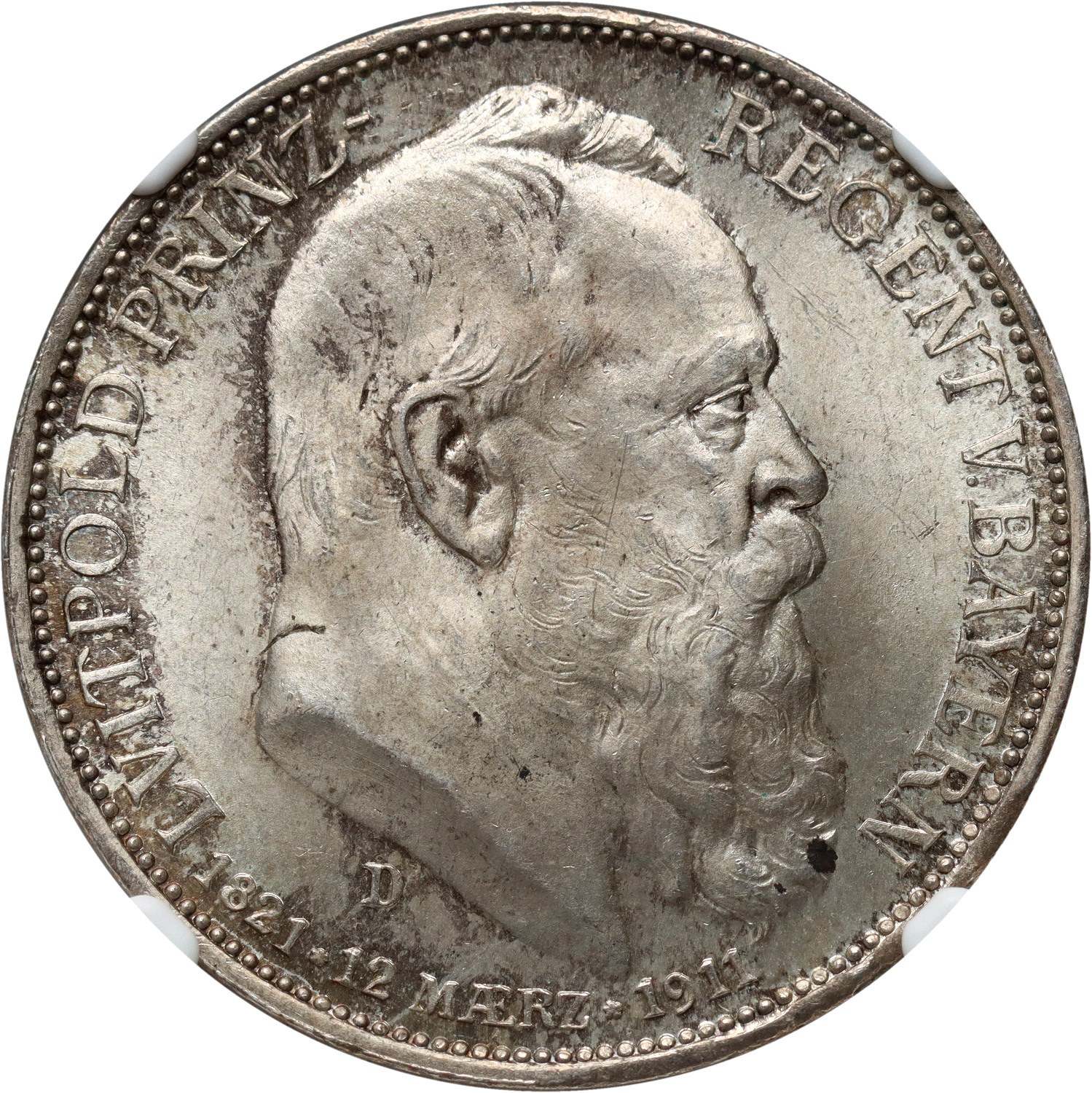 Germany, Bavaria, 3 Mark 1911 D, Munich, 90th Birthday of Prince Regent Luitpold
