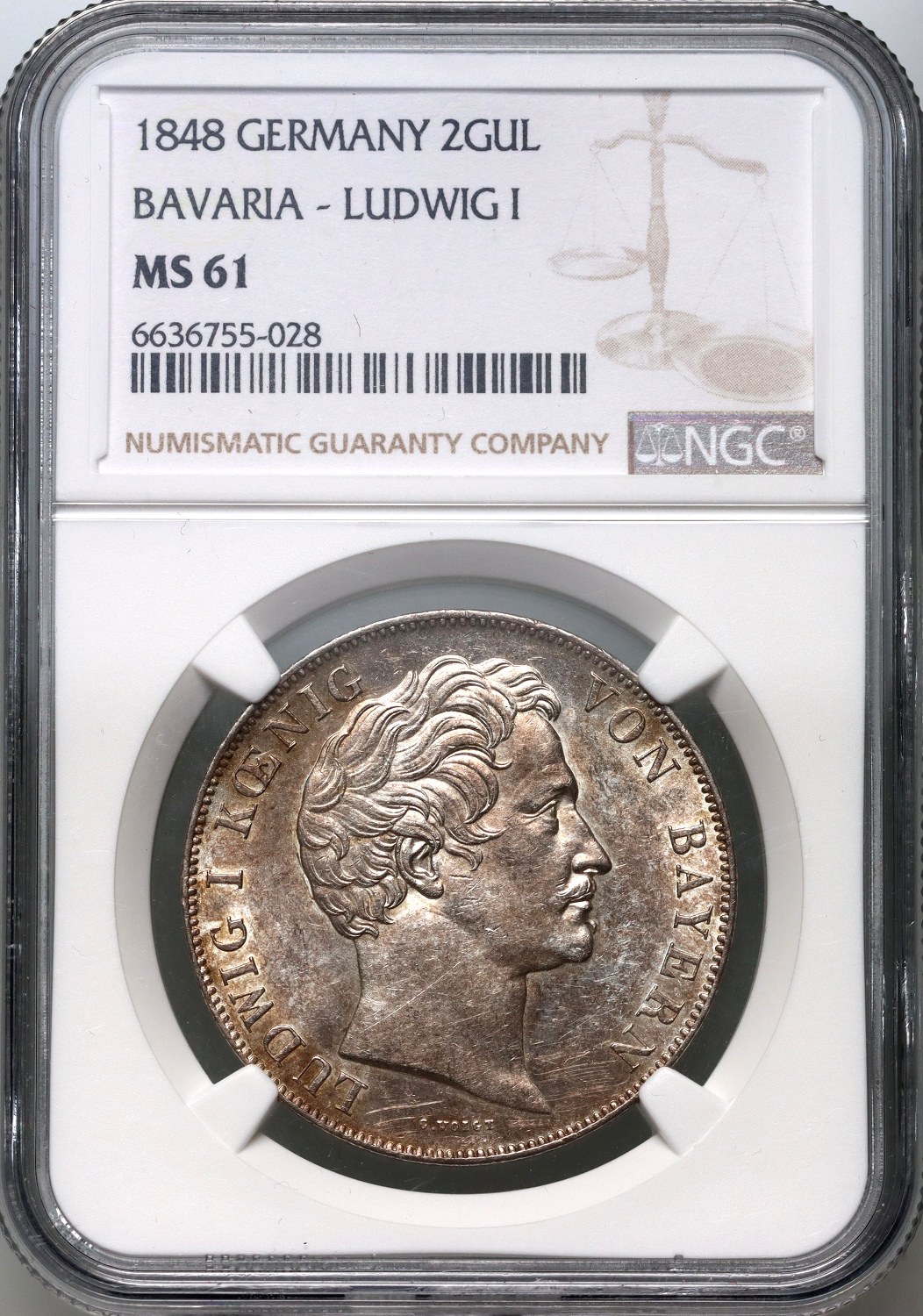 Germany, Bayern, Ludwig I, 2 Gulden 1848, Munich