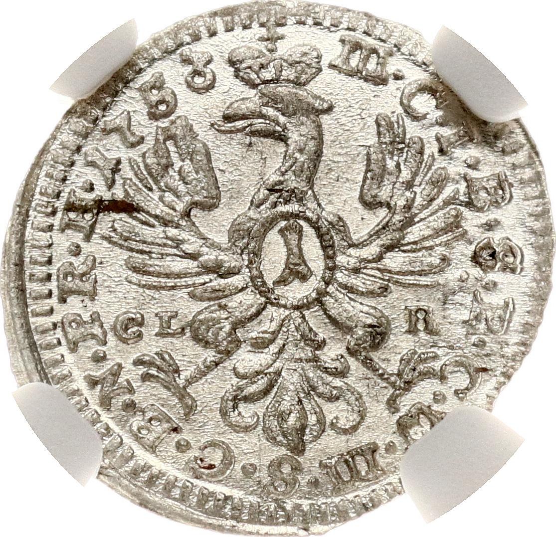 Germany, Brandenburg-Bayreuth. Friedrich III (1735-1763). 1 Kreuzer 1753 CLR. Silver. KM 192. NGC MS 66. TOP POP.