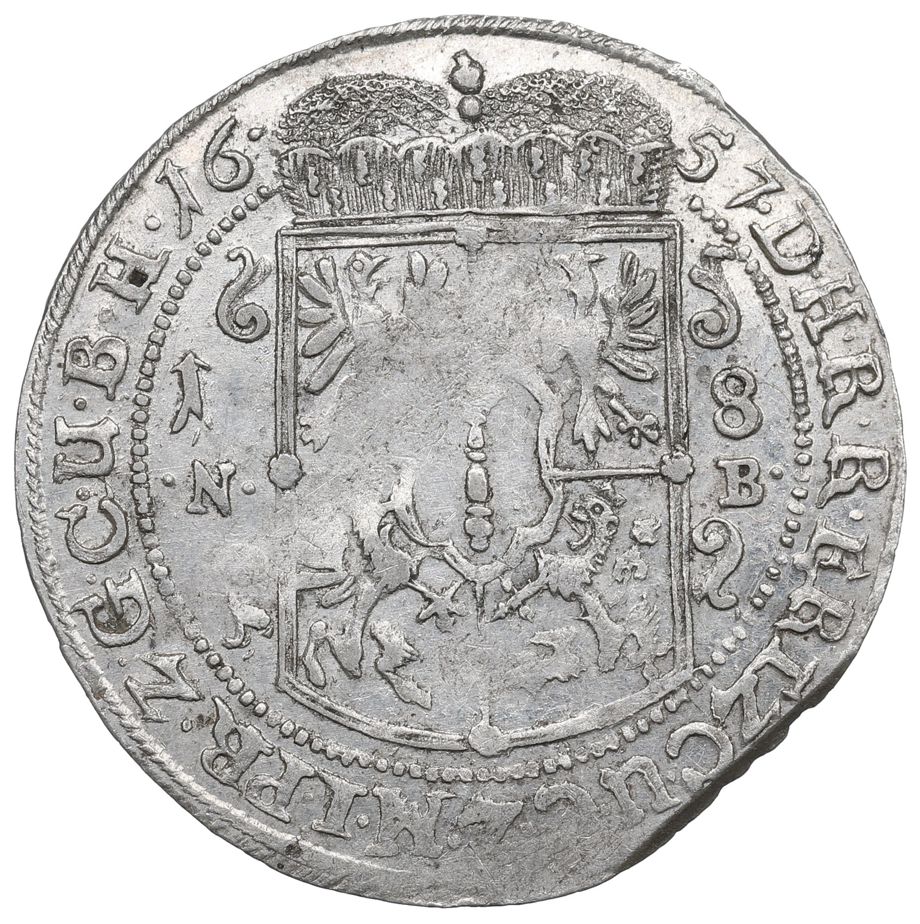 Egzemplarz o bardzo dobrze zachowanych detalach i połysku z wyraźną wadą menniczą.