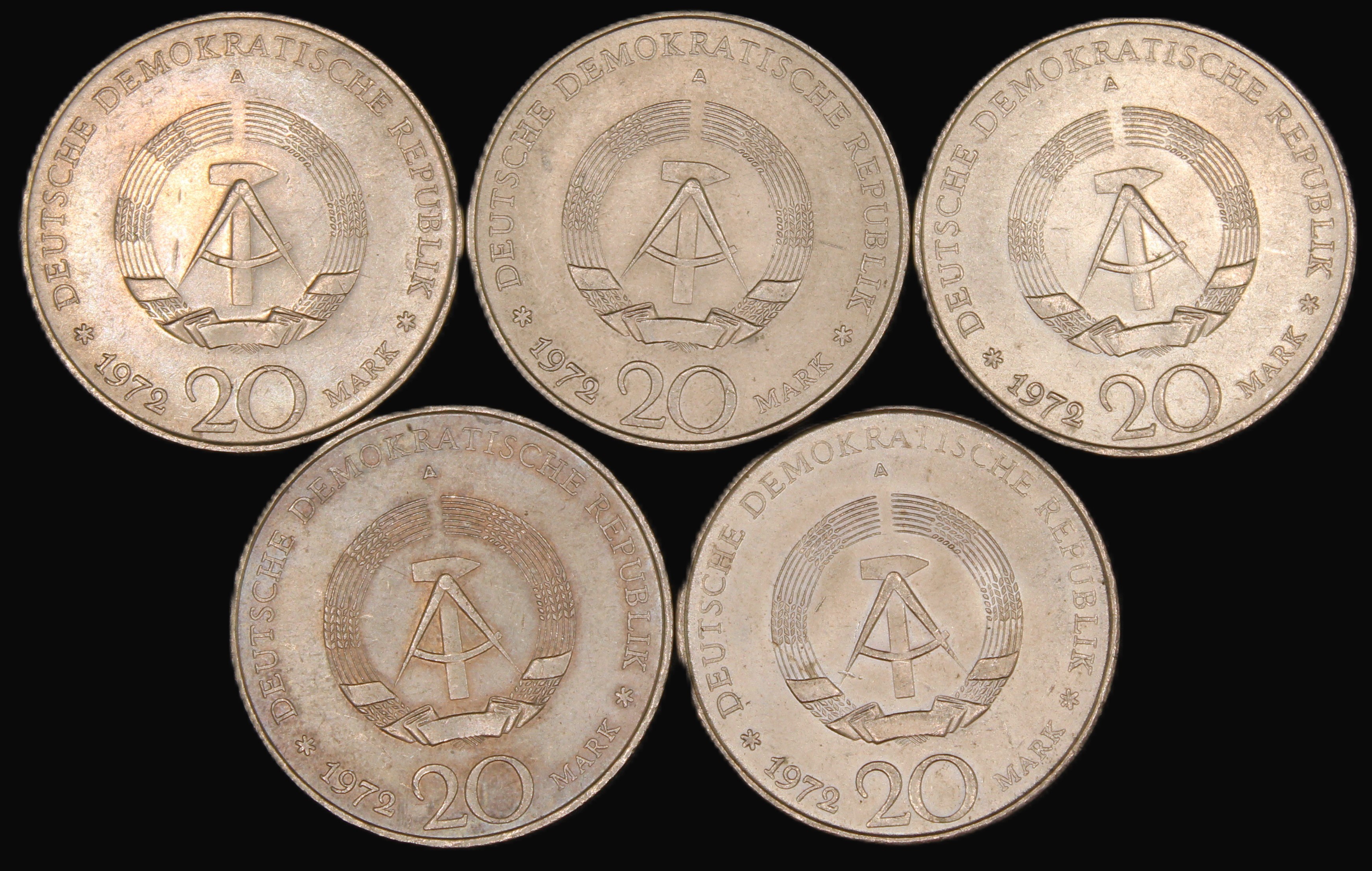 Germany. DDR 20 Mark 1972 Pieck 5 Pcs