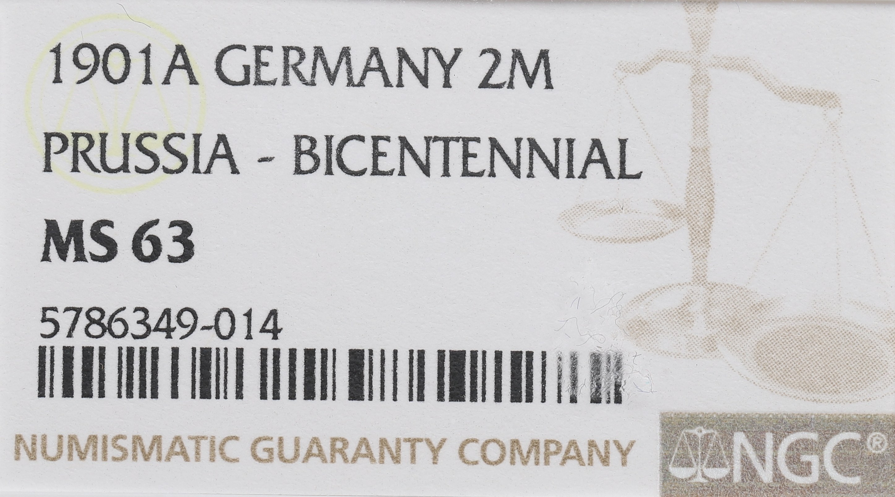 Germany, Preussen, 2 mark 1901 - 200 years of Kingdom of Prussia NGC MS63