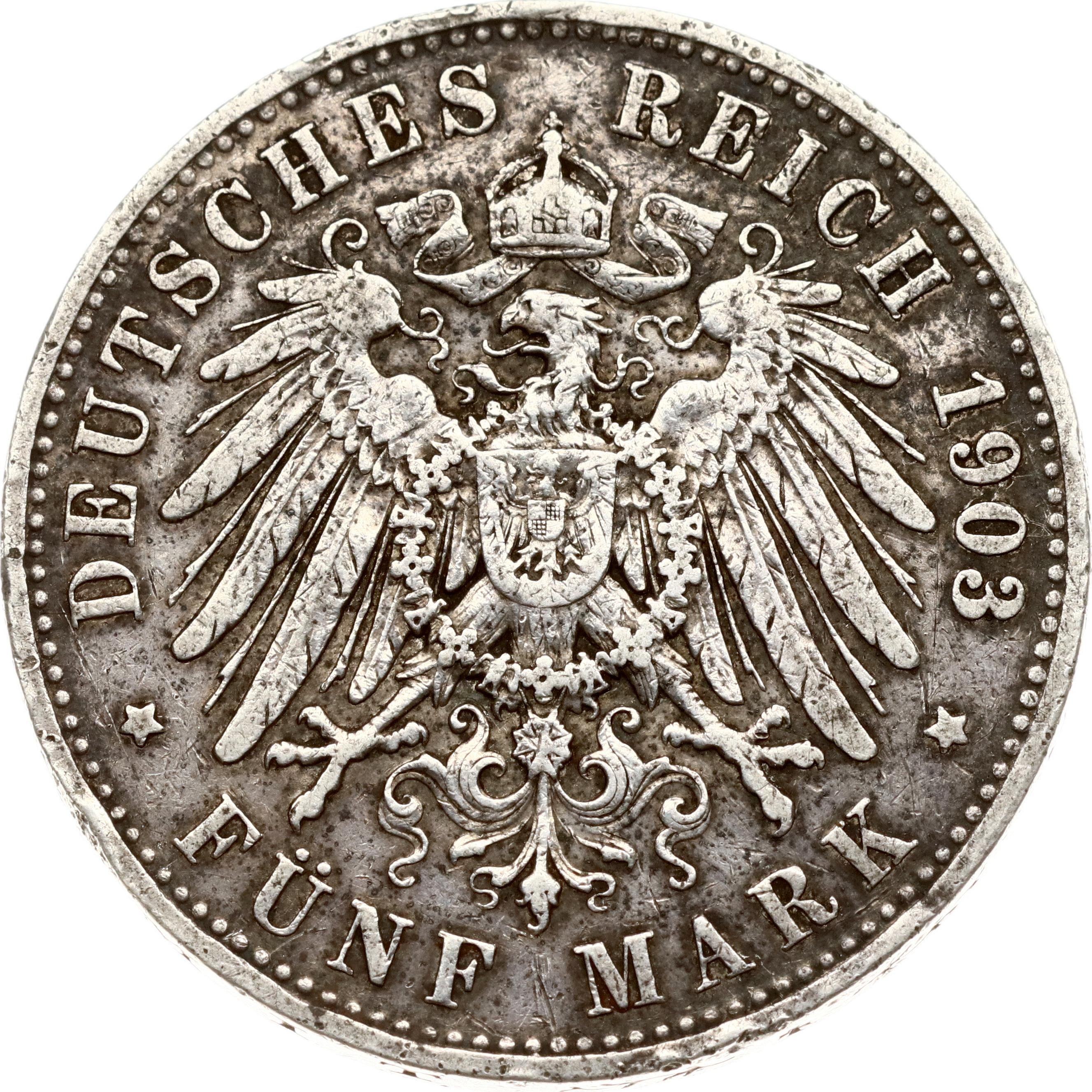 Germany, Prussia. Wilhelm II (1888-1918). 5 Mark 1903 A. Silver 27.62 g. KM 523, Dav 789.