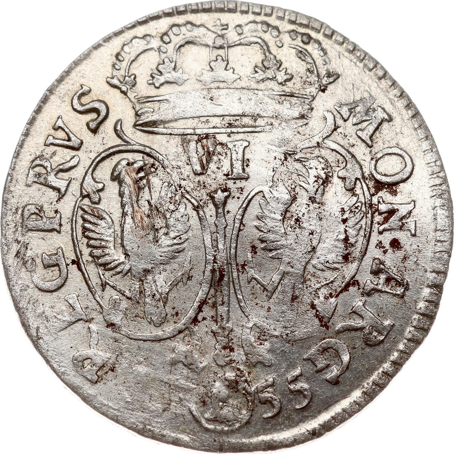 Germany, Prussia. Friedrich II (1740-1786). 6 Groscher 1755 E. Silver 2.70 g. KM A277. Slight surface damage.