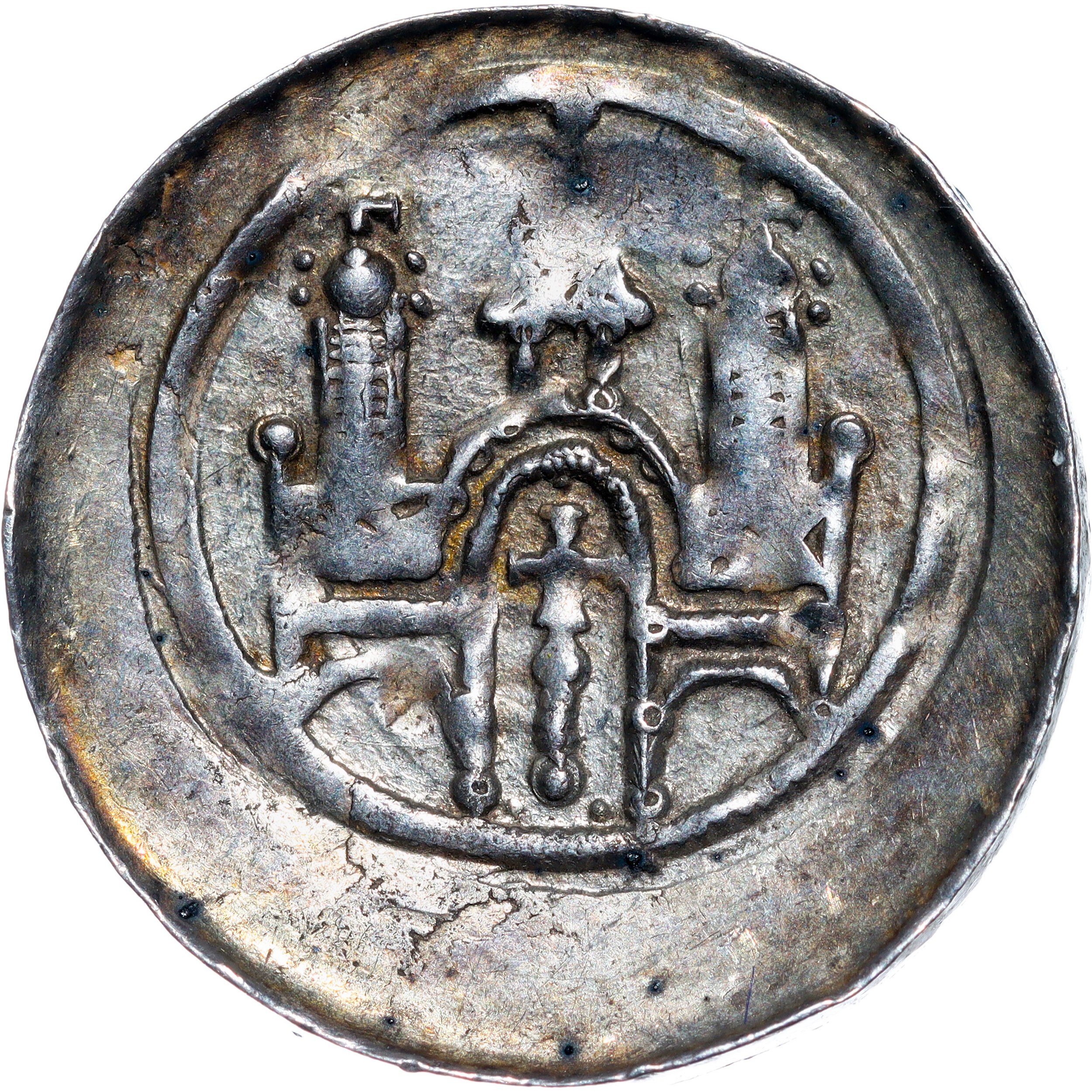 AR Pfennig, Struck before 1190. Half-length bust of abbot left, raising hand in benediction and holding crozier / Abbey façade.