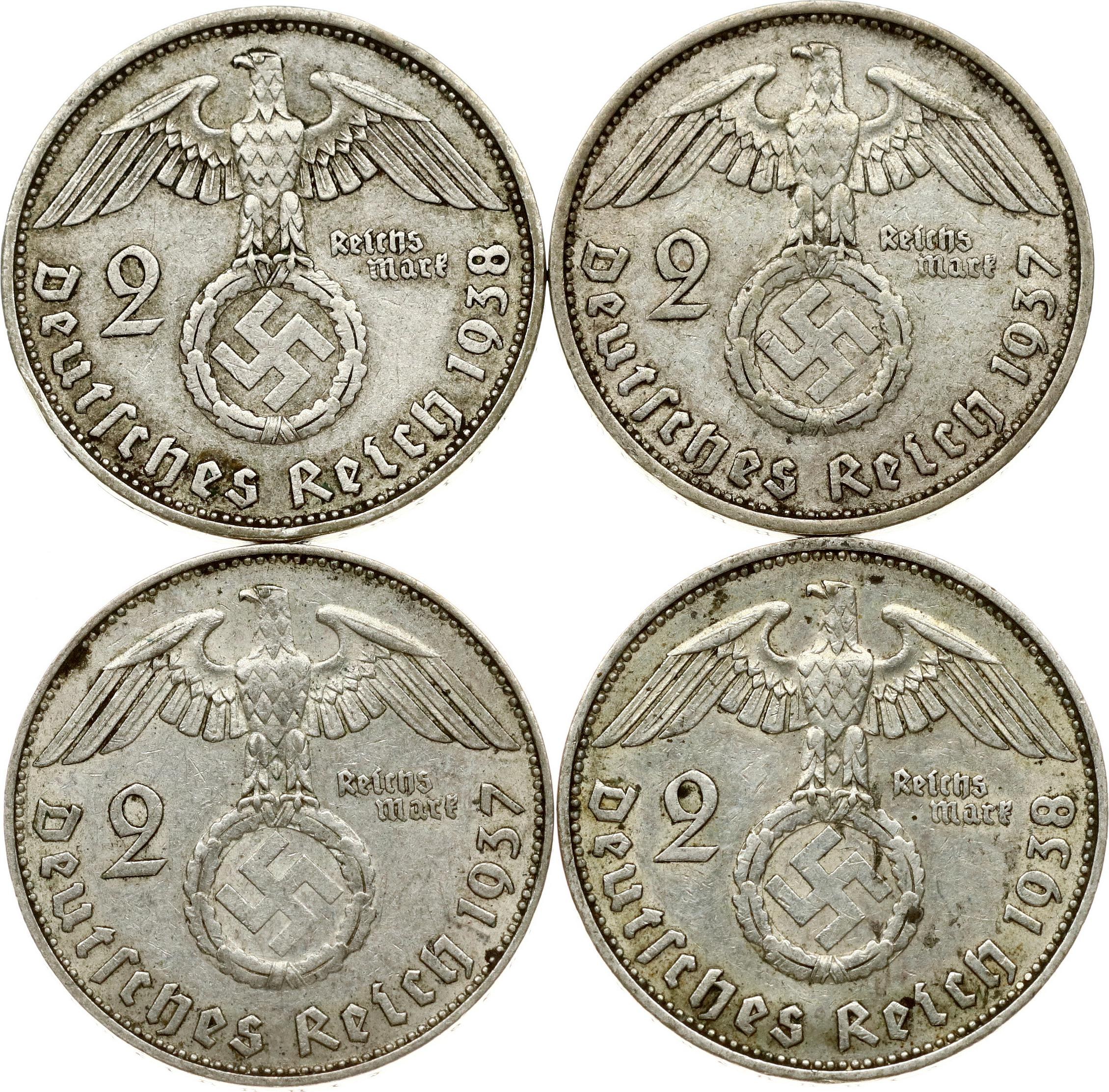 Germany Third Reich 2 Reichsmark 1937 & 1938 Lot of 4 Coins