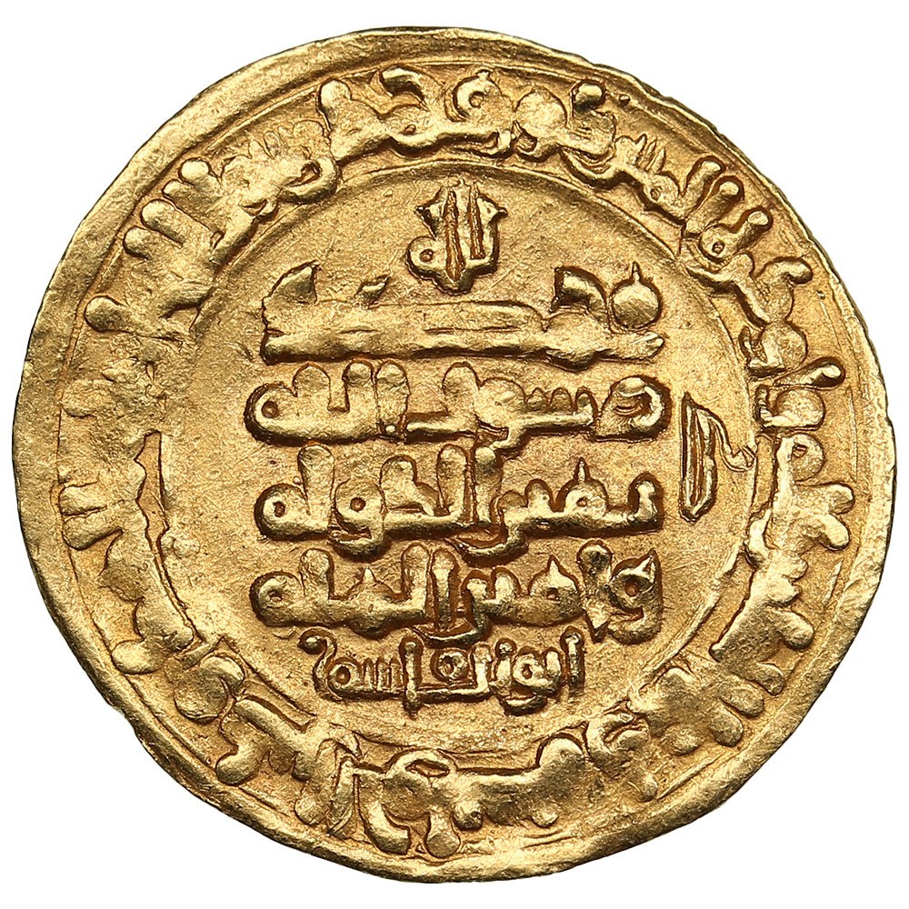 Fine gold. 3.11g. 23mm. UNC/UNC. A striking specimen in deep gold tones, exhibiting exceptional detail and radiant mint luster. Regnal titulature: Yamin al-Dawla wa Amin al-Milla Abu'l-Qasim. Album 1606. The dinars of the Ghaznavid rulers struck in Nishapur (Naysabur), in present-day northeastern Iran, are known for their fine gold content and elaborate, highly artistic epigraphic style. This specimen is of particularly high quality, with well-preserved minor details in the relief.