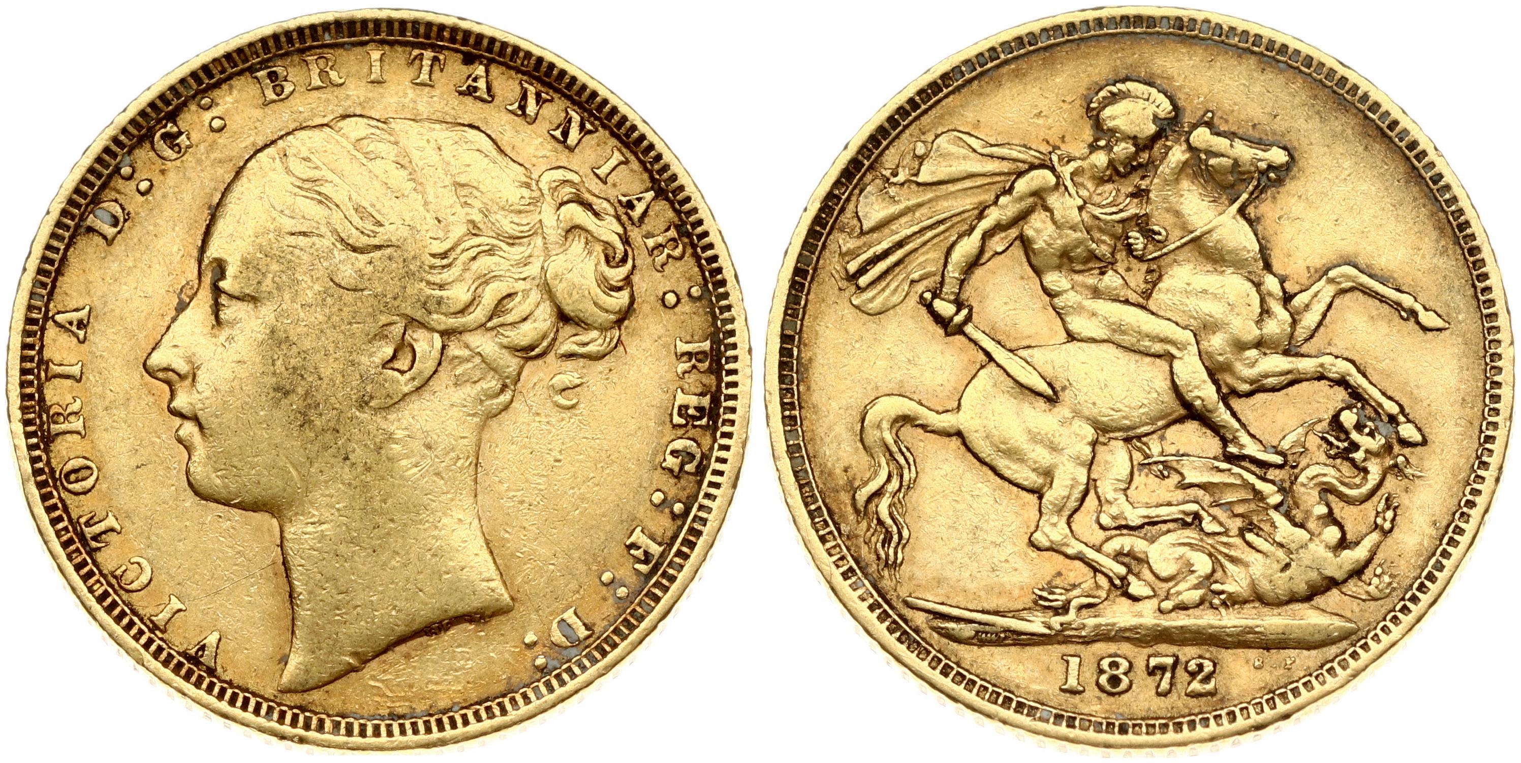 Great Britain 1 Sovereign 1872 Victoria(1837-1901). Obverse: Head left. Obverse Legend: VICTORIA D:G: BRITANNIAR: REG...