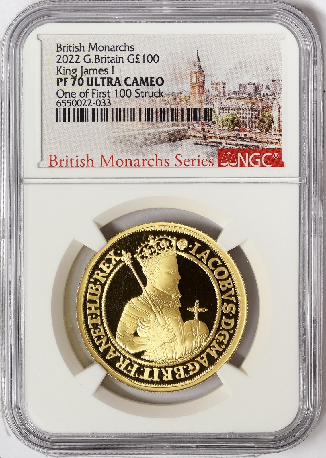 British Monarchs - King James I. One of First 100 Struck. Au.999 31,21 g Very Rare TOP POP.