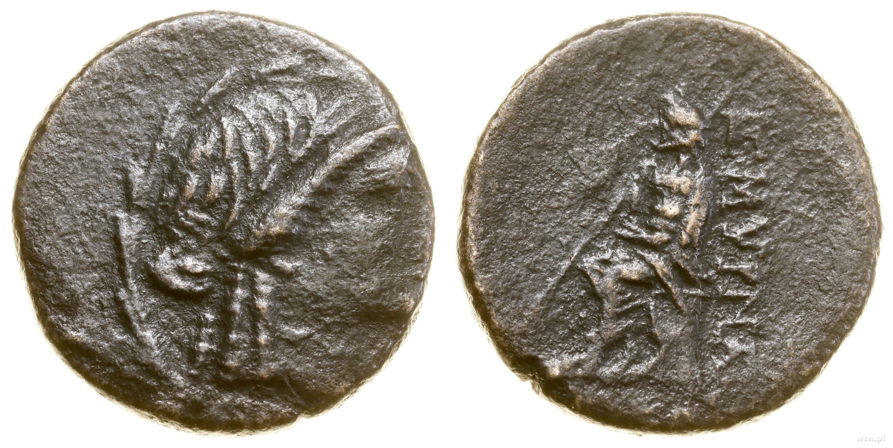 Aw: Głowa Apollo otoczona wieńcem laurowym w prawo, Rw: Homer siedzący w prawo, trzymający zwój, za nim berło, [ΞMYPNAIΩN]