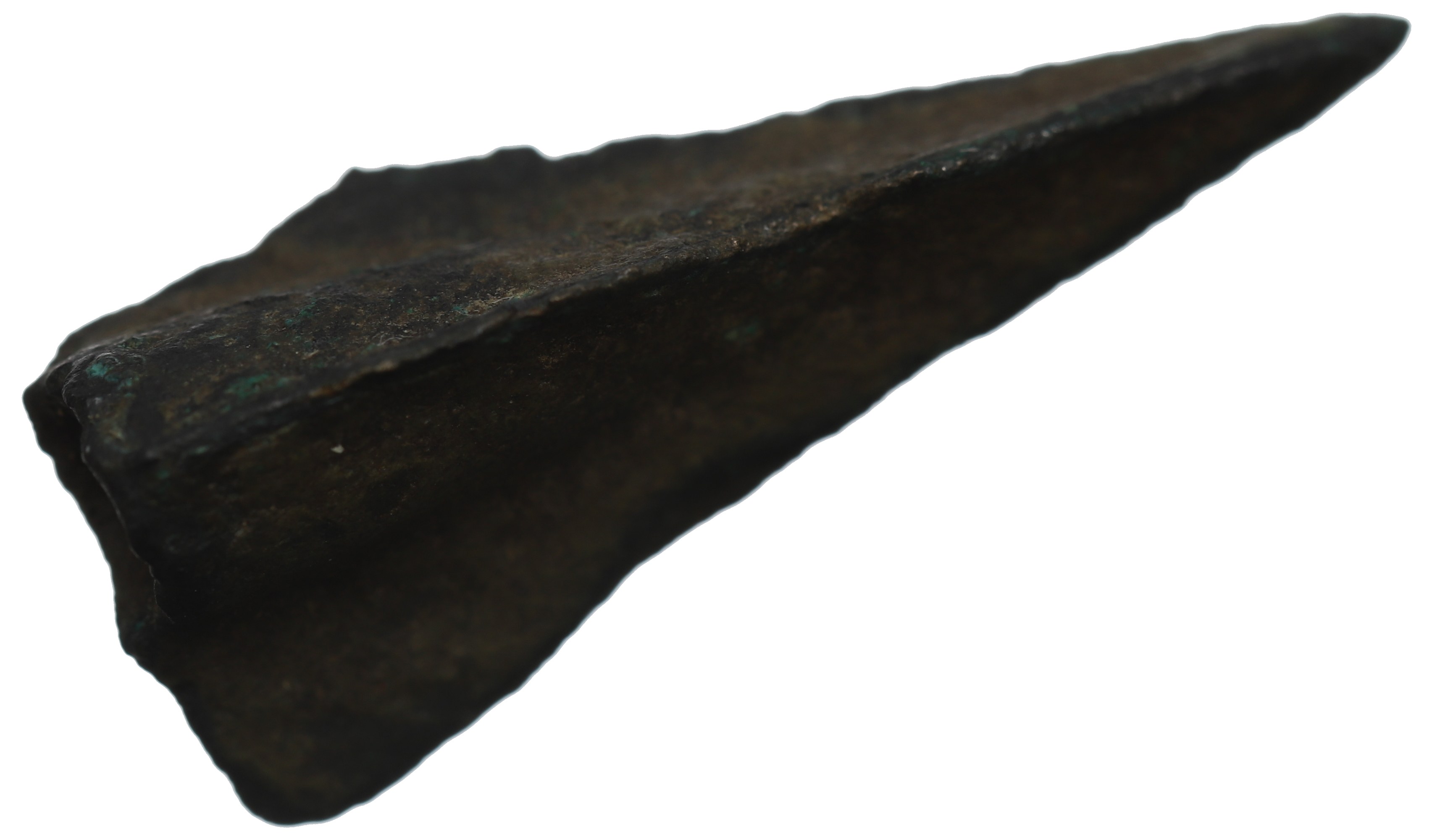 Brąz, wymiary 25 mm długość, podstawa 10 mm, waga 1,73 g.