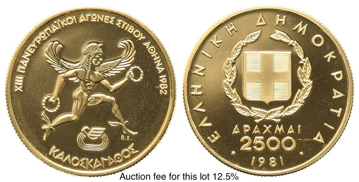 1981. Pan European Games. Au fineness 900 (6.45 g). PROOF.