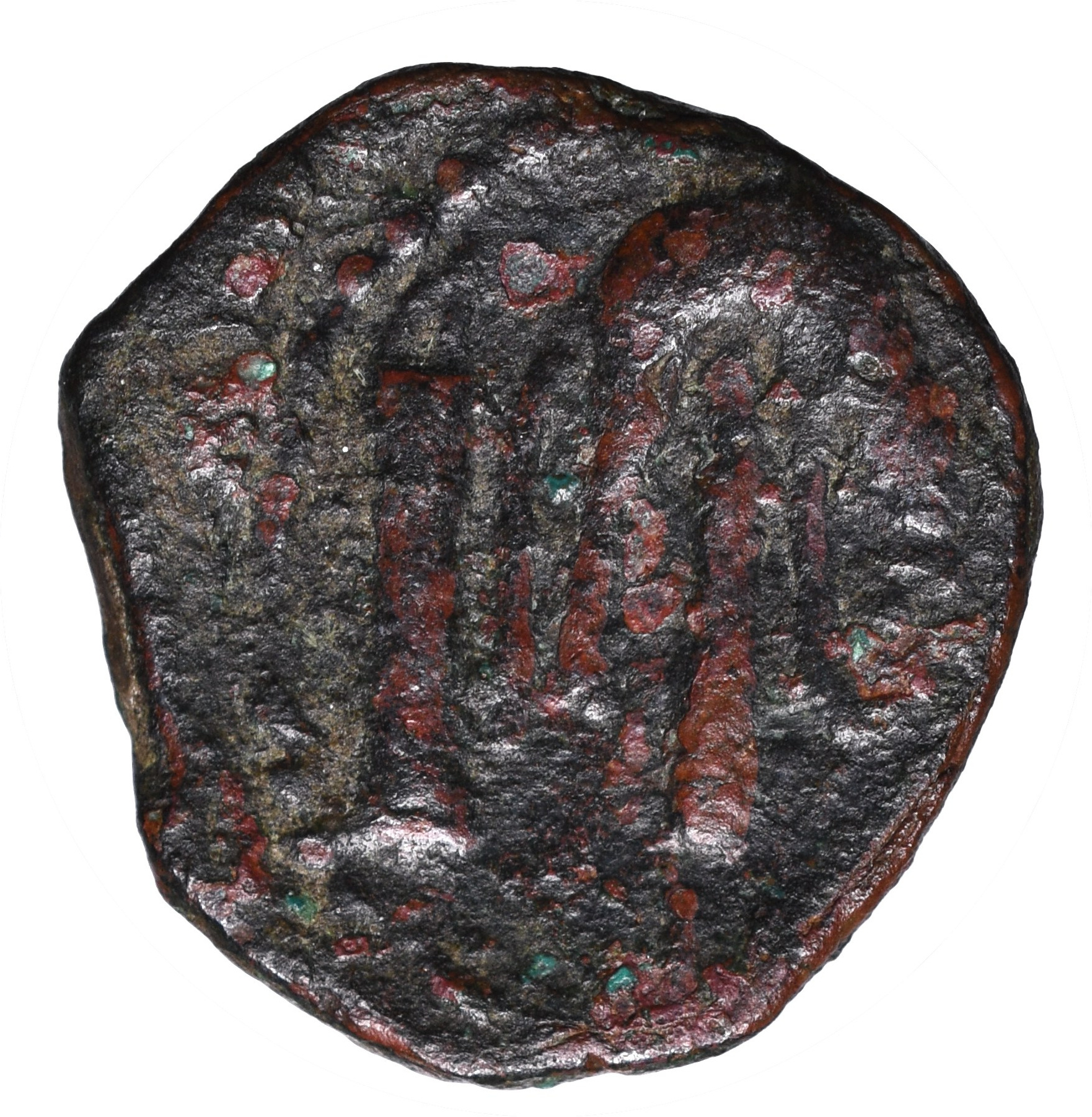 Brąz, średnica 20,5 x 21 mm, waga 5,6 g, oś 12 h.
