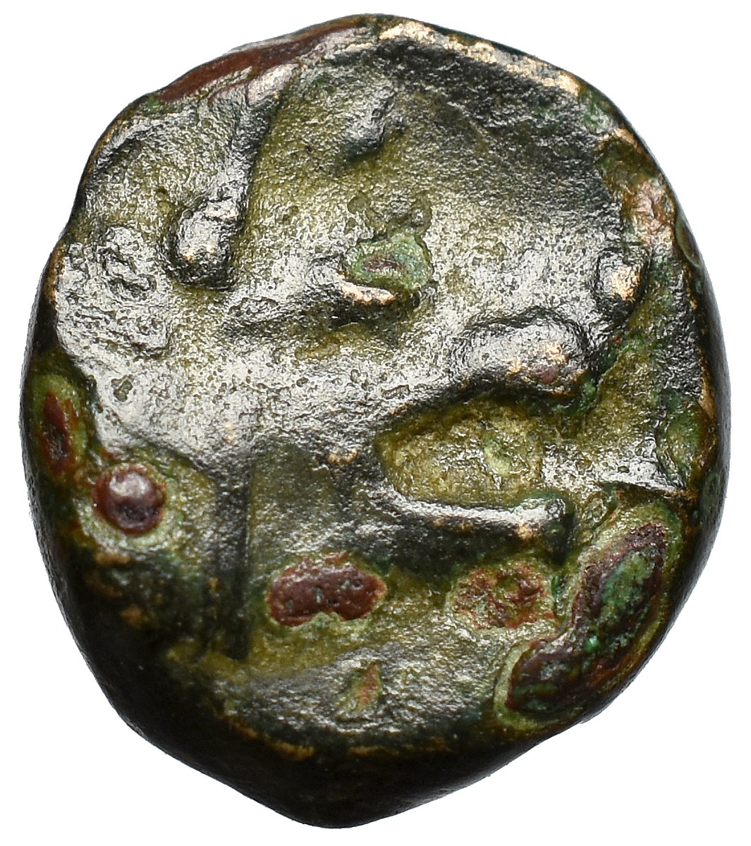 Brąz, średnica 8 x 9 mm, waga 0,83 g, oś 6 h.