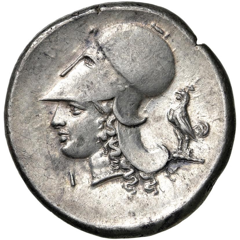 CORINTHIA Corinth - Stater (Circa 345-307 BC) Pegasus flying l. - R/ Helmeted head of Athena on the left, I, behind, cock - Calciati 423 AG (g 8.56)