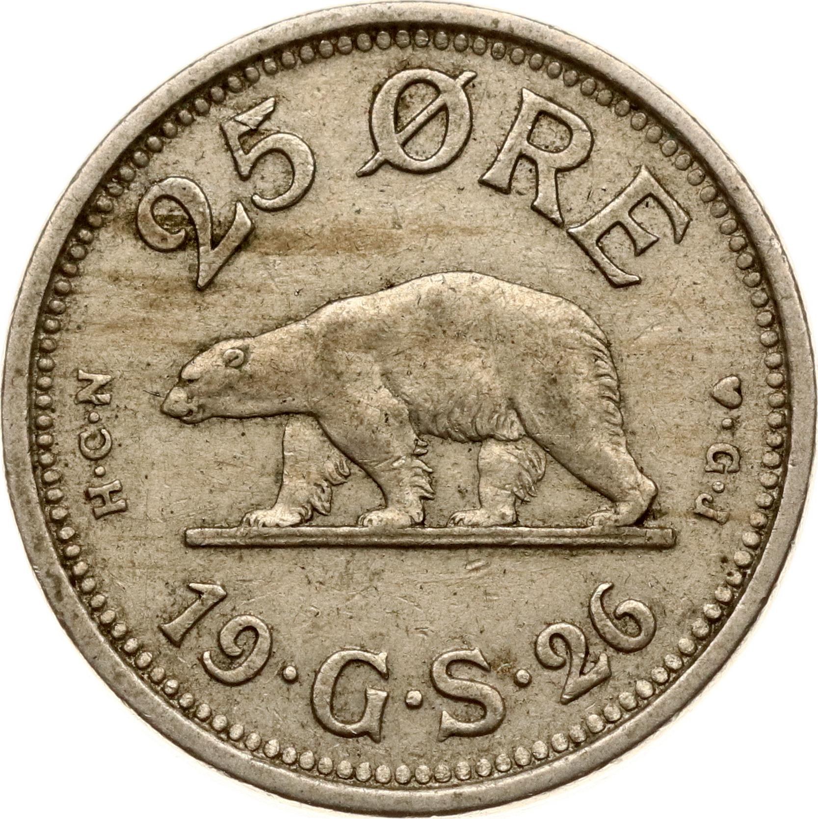 Greenland. Christian X (1912-1947). 25 Ore 1926 HCN;GJ. Copper-nickel 7.00 g. KM 5.