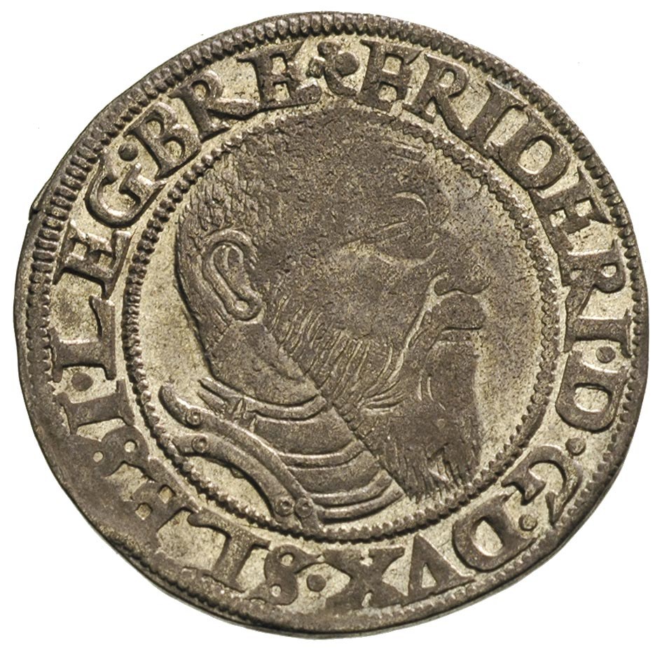Fryderyk II 1505-1547, grosz 1545, Legnica, F.u.S. 1370, bardzo ładny, duży blask menniczy