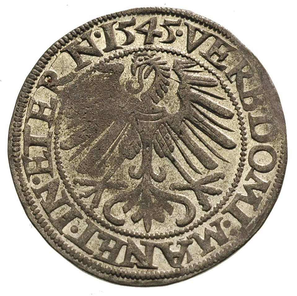 grosz 1545, Legnica, F.u.S. 1370, bardzo ładny, duży bl...
